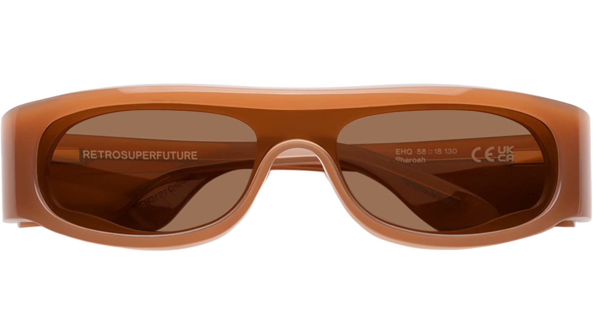 Occhiali da sole Retrosuperfuture Pharoah Cola con montatura in acetato marrone chiaro e lenti color marrone. Codice modello: EHQ. Made in Italy. Rivenditore autorizzato RSF online. Gli occhiali vengono consegnati con custodia e accessori originali e sono coperti dalla garanzia ufficiale di 12 mesi del produttore.