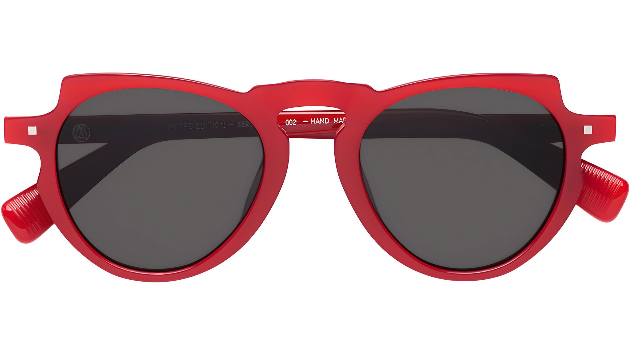 Occhiali da sole Ottomila Stuart Cherry con montatura unisex rotonda in acetato rosso e lenti color grigio scuro. Limited Edition. Linea: Seasonal. Codice modello: 9WU. Made in Italy. Rivenditore autorizzato 8000 Eyewear online. Gli occhiali vengono consegnati con custodia e accessori originali e sono coperti dalla garanzia ufficiale di 12 mesi del produttore.