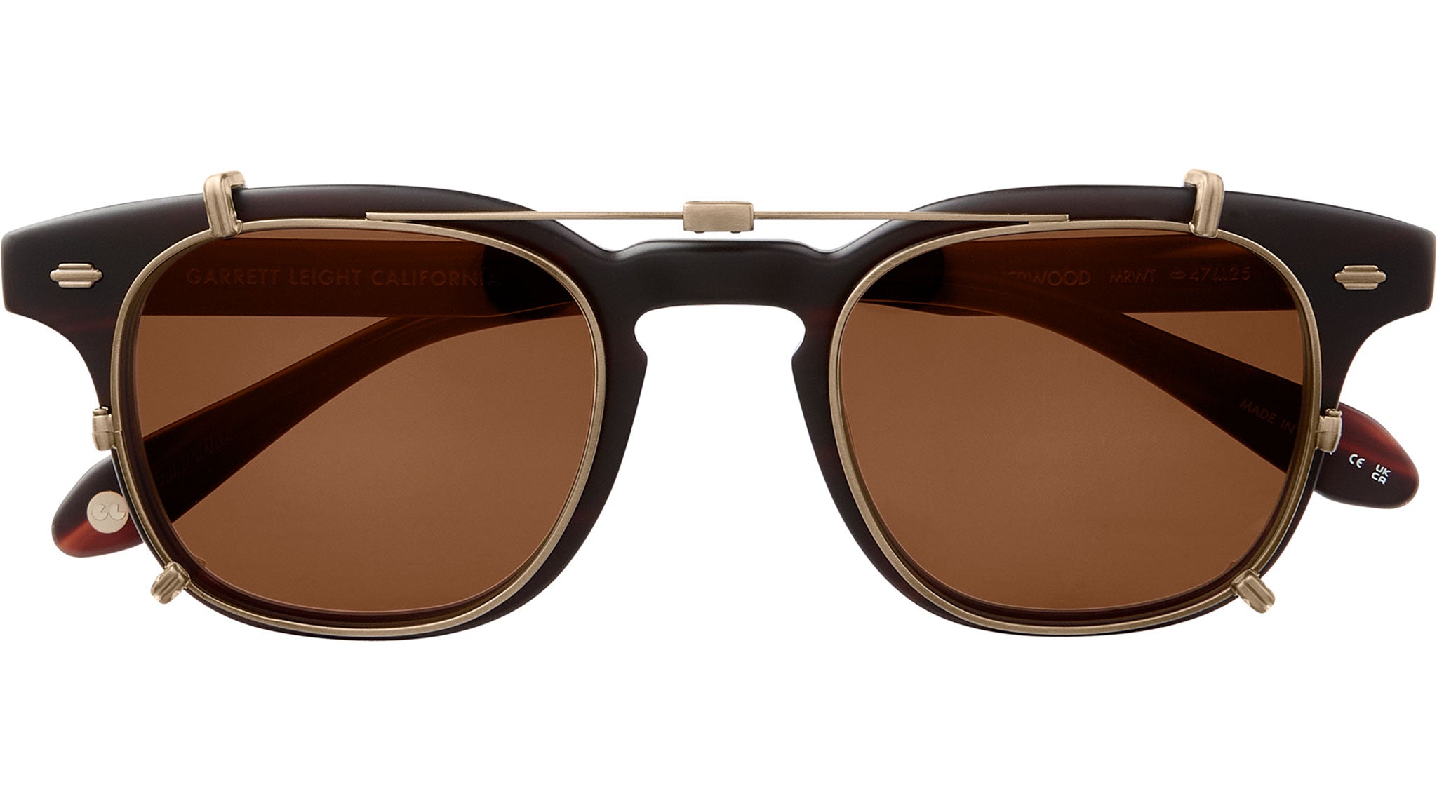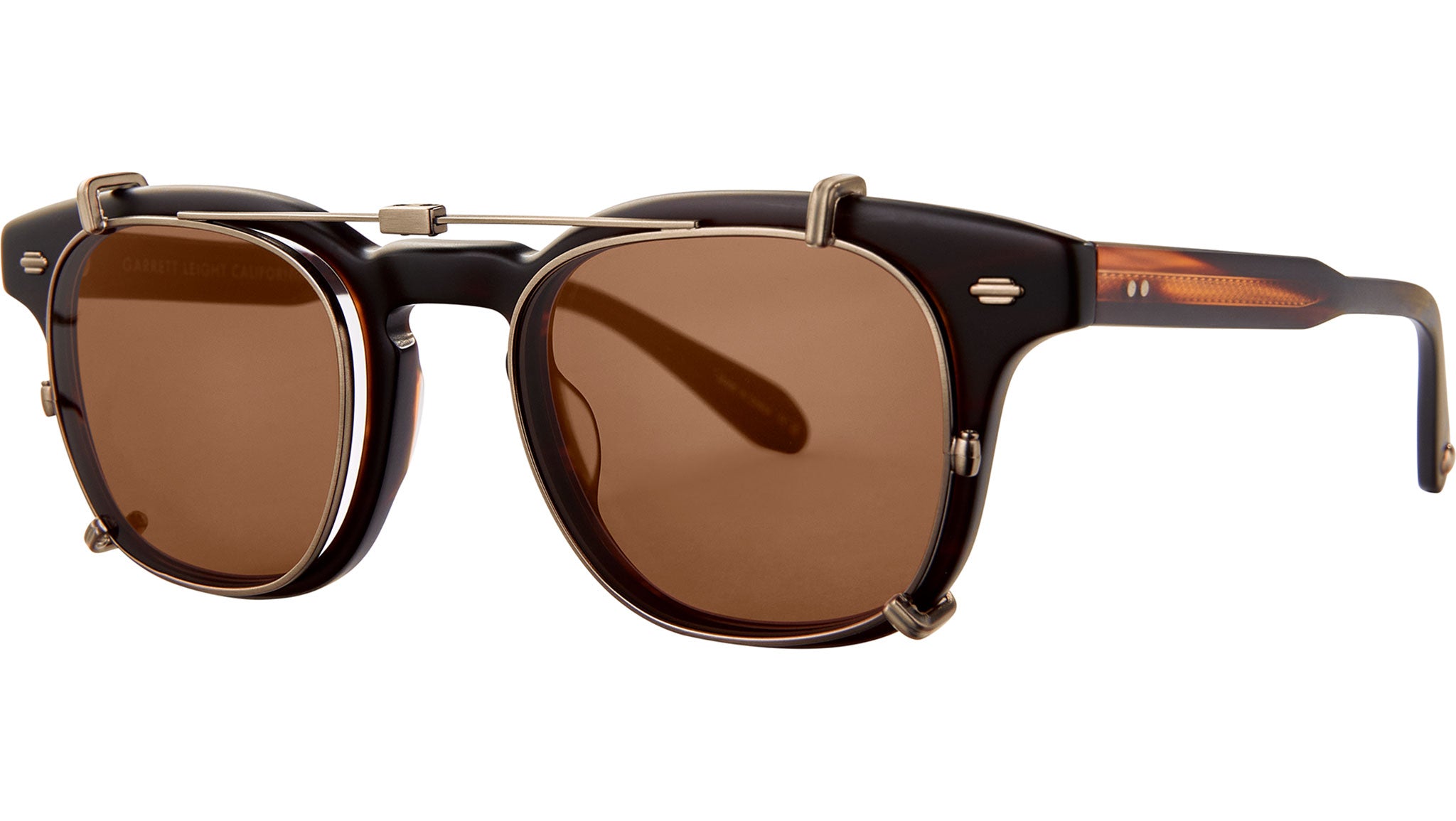 Garrett Leight Sherwood Clip Antique Gold unisex con montatura squadrata in acciaio oro anticato e lenti quercia. Linea: GLCO. Codice modello: 5154. Codice colore: ATG/O. Rivenditore autorizzato Garrett Leight online. Gli occhiali vengono consegnati con custodia e accessori originali e sono coperti dalla garanzia ufficiale di 12 mesi del produttore.