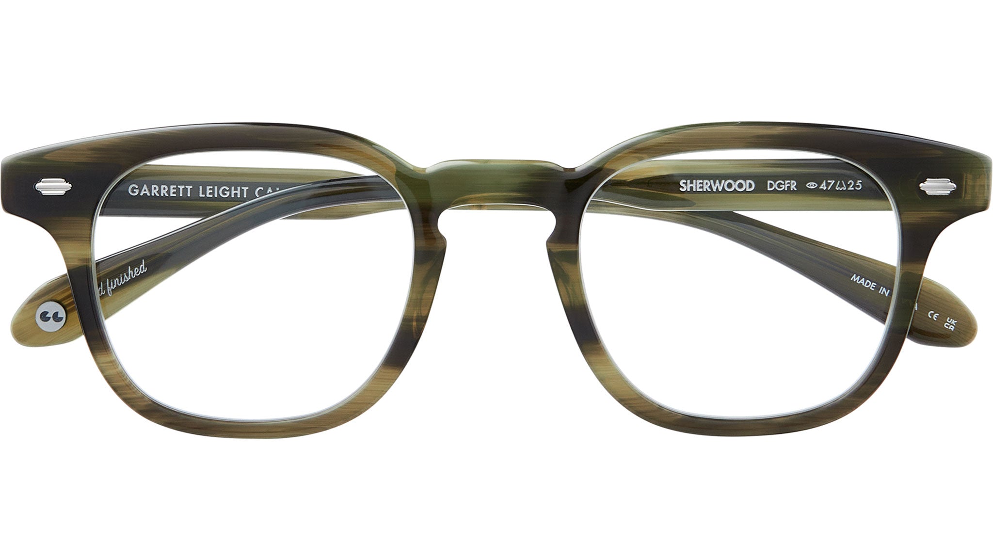 Occhiali da vista Garrett Leight Sherwood Douglas Fir unisex con montatura squadrata in acetato abete douglas e lenti lenti demo. Linea: GLCO. Codice modello: 1154. Codice colore: DGFR. Rivenditore autorizzato Garrett Leight online. Gli occhiali vengono consegnati con custodia e accessori originali e sono coperti dalla garanzia ufficiale di 12 mesi del produttore.