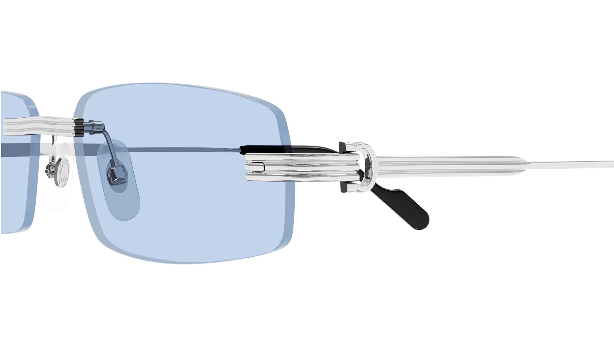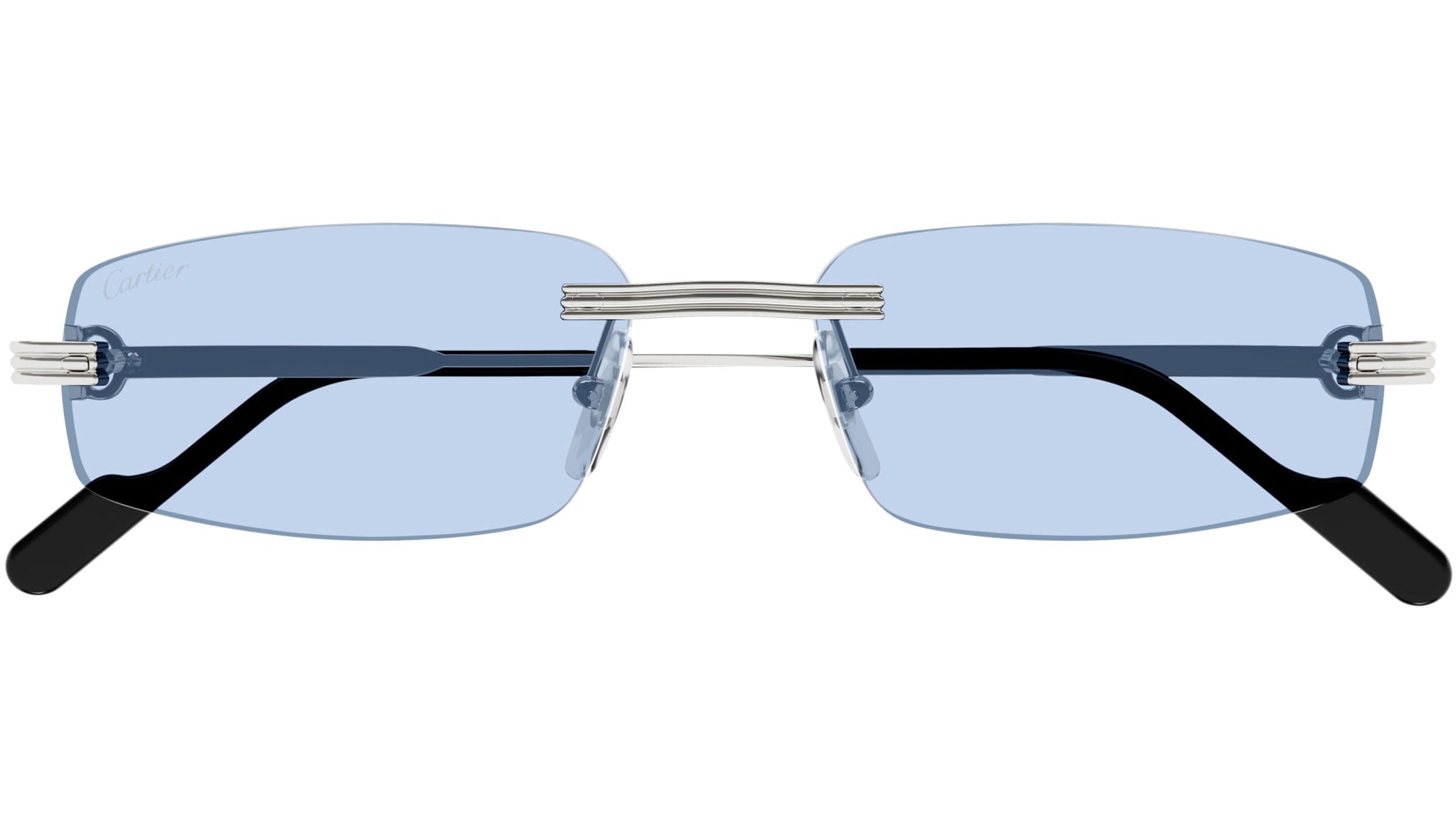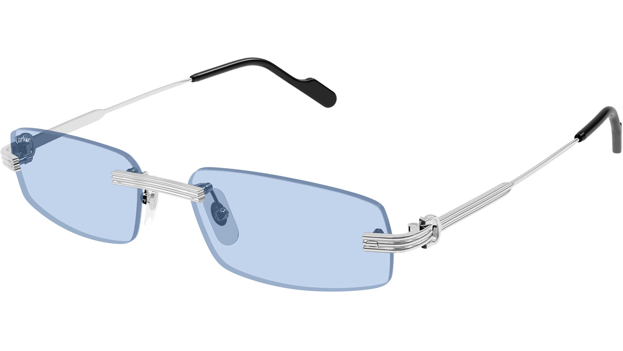 Occhiali da sole Cartier CT0535S 005 uomo con montatura rettangolare in metallo platino e lenti blu chiaro. Linea: Core Range. Codice modello: CT0535S. Codice colore: 005. Made in France. Rivenditore autorizzato Cartier online. Gli occhiali vengono consegnati con custodia e accessori originali e sono coperti dalla garanzia ufficiale di 12 mesi del produttore.