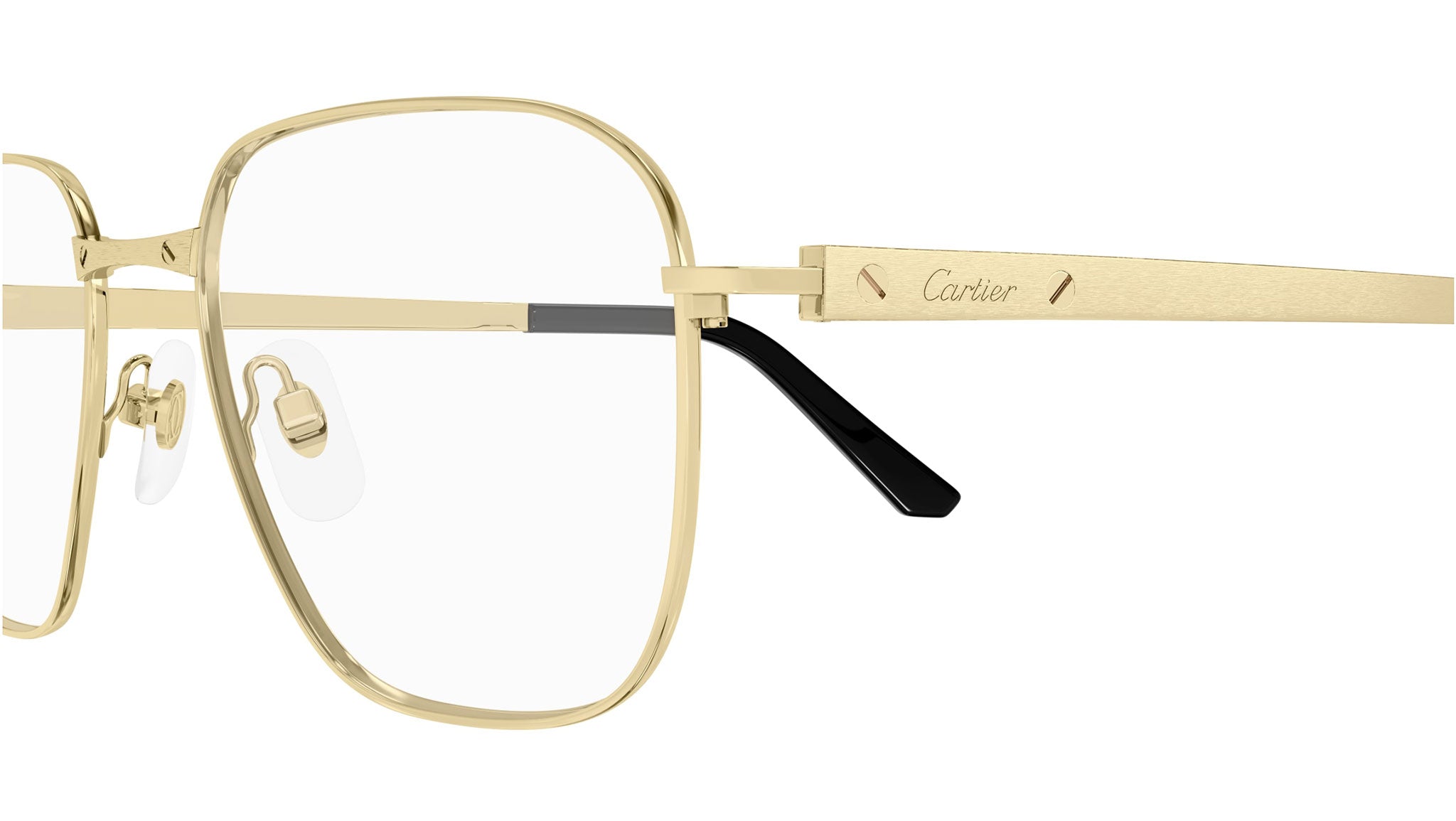 Occhiali da vista Cartier CT0553O 005 uomo con montatura rettangolare in titanio oro e lenti demo. Linea: Exception. Codice modello: CT0553O. Codice colore: 005. Made in Japan. Rivenditore autorizzato Cartier online. Gli occhiali vengono consegnati con custodia e accessori originali e sono coperti dalla garanzia ufficiale di 12 mesi del produttore.