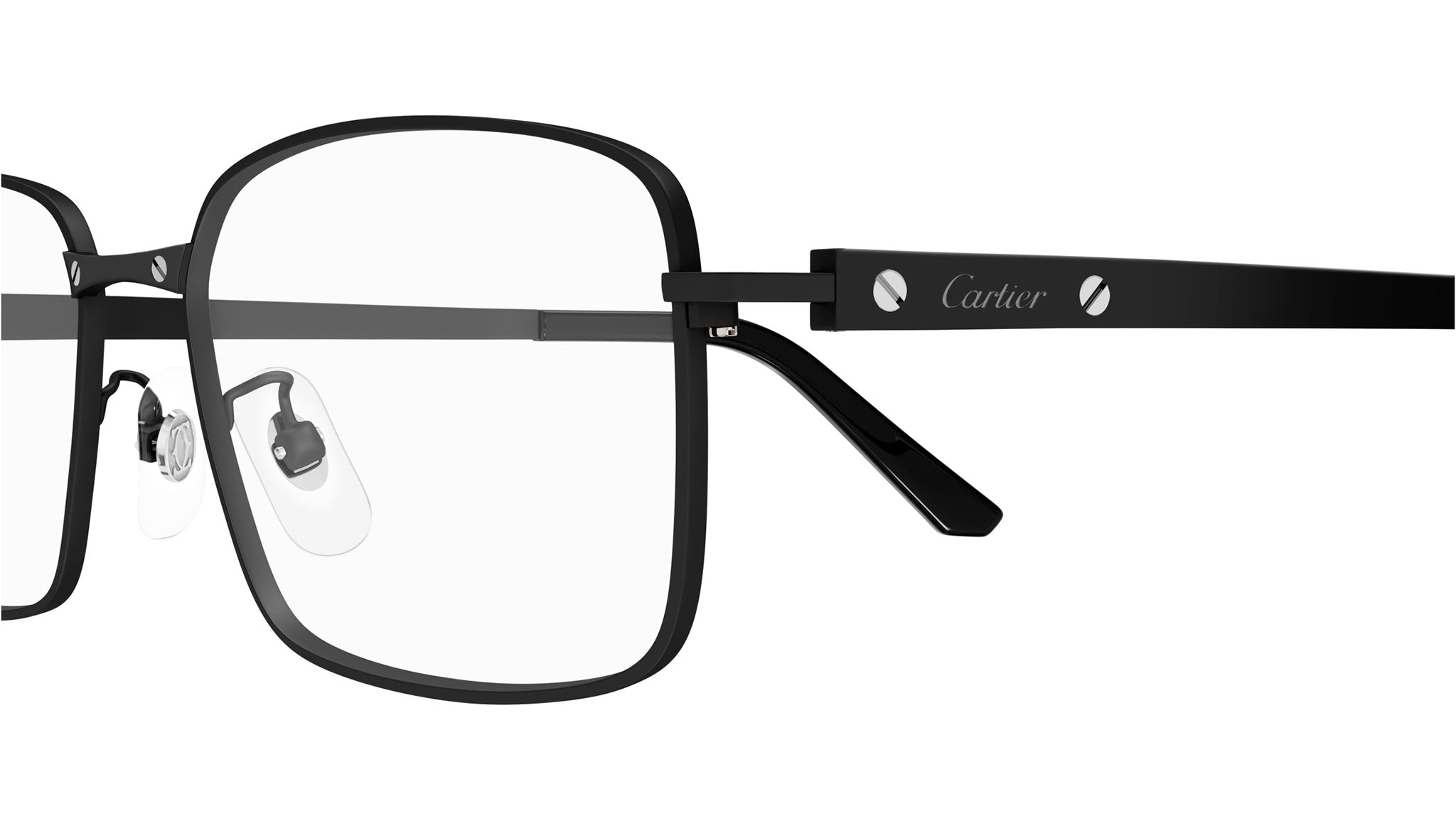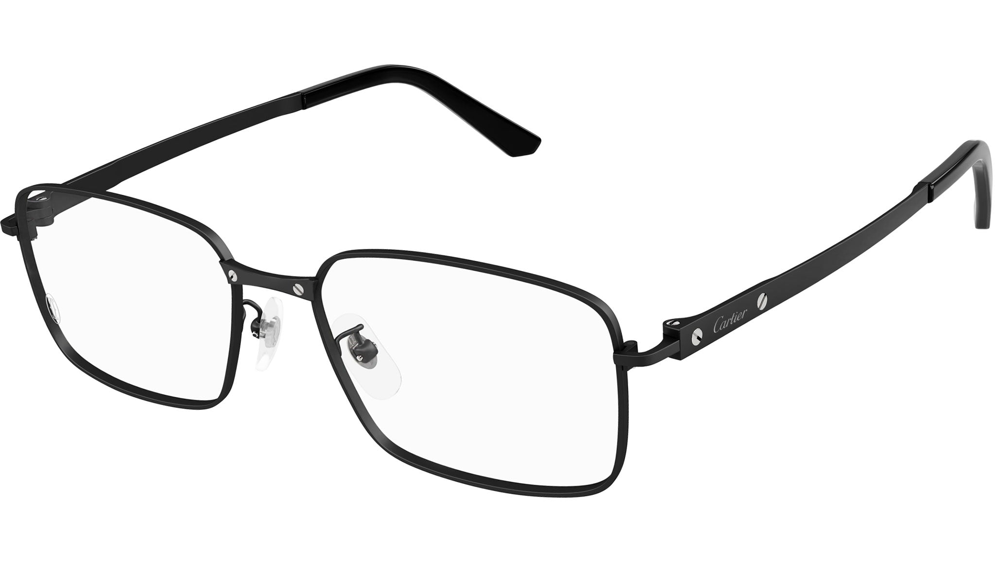 Occhiali da vista Cartier CT0555OA 004 uomo con montatura rettangolare in titanio nero e lenti demo. Linea: Exception. Codice modello: CT0555OA. Codice colore: 004. Made in Japan. Rivenditore autorizzato Cartier online. Gli occhiali vengono consegnati con custodia e accessori originali e sono coperti dalla garanzia ufficiale di 12 mesi del produttore.