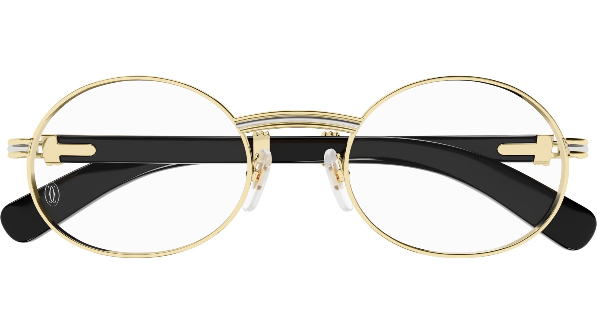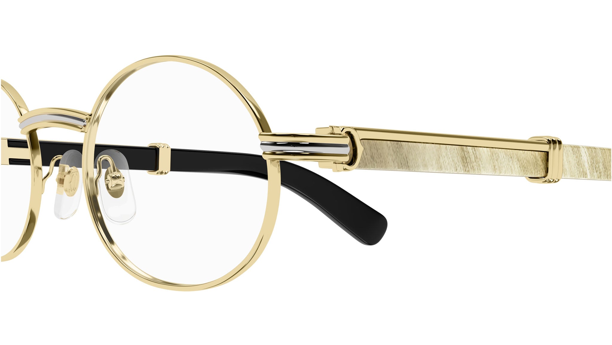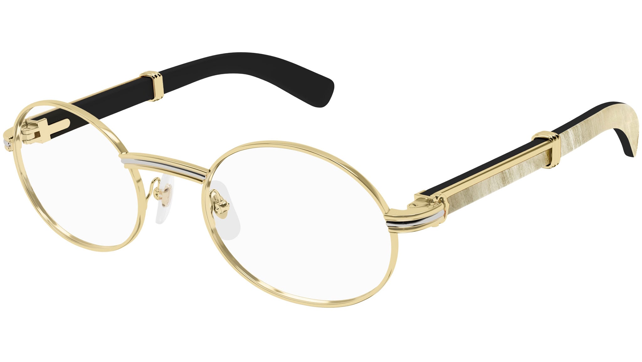 Occhiali da vista Cartier CT0464O 002 uomo con montatura ovale in metallo oro e lenti demo. Linea: Exception. Codice modello: CT0464O. Codice colore: 002. Made in France. Rivenditore autorizzato Cartier online. Gli occhiali vengono consegnati con custodia e accessori originali e sono coperti dalla garanzia ufficiale di 12 mesi del produttore.