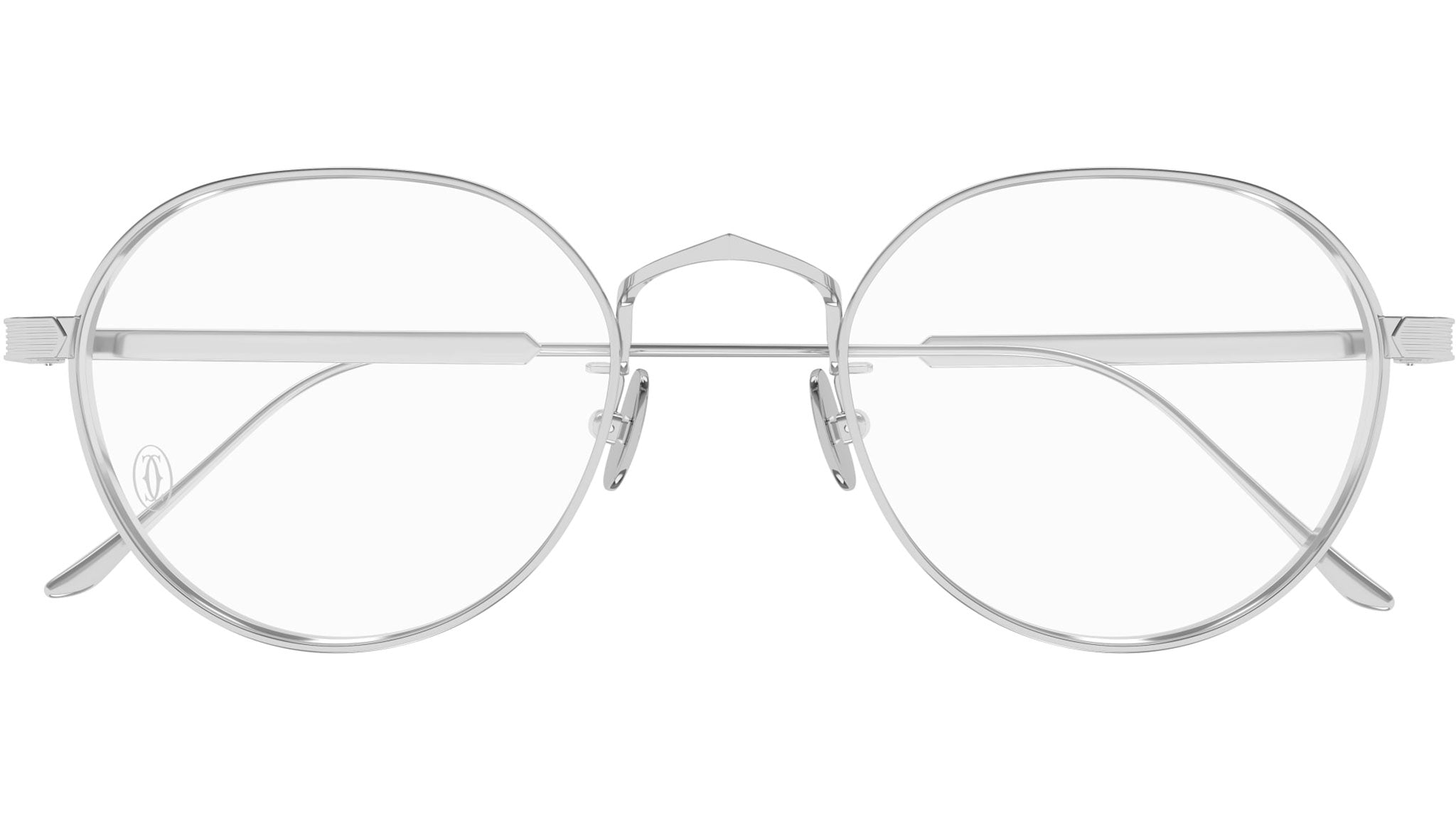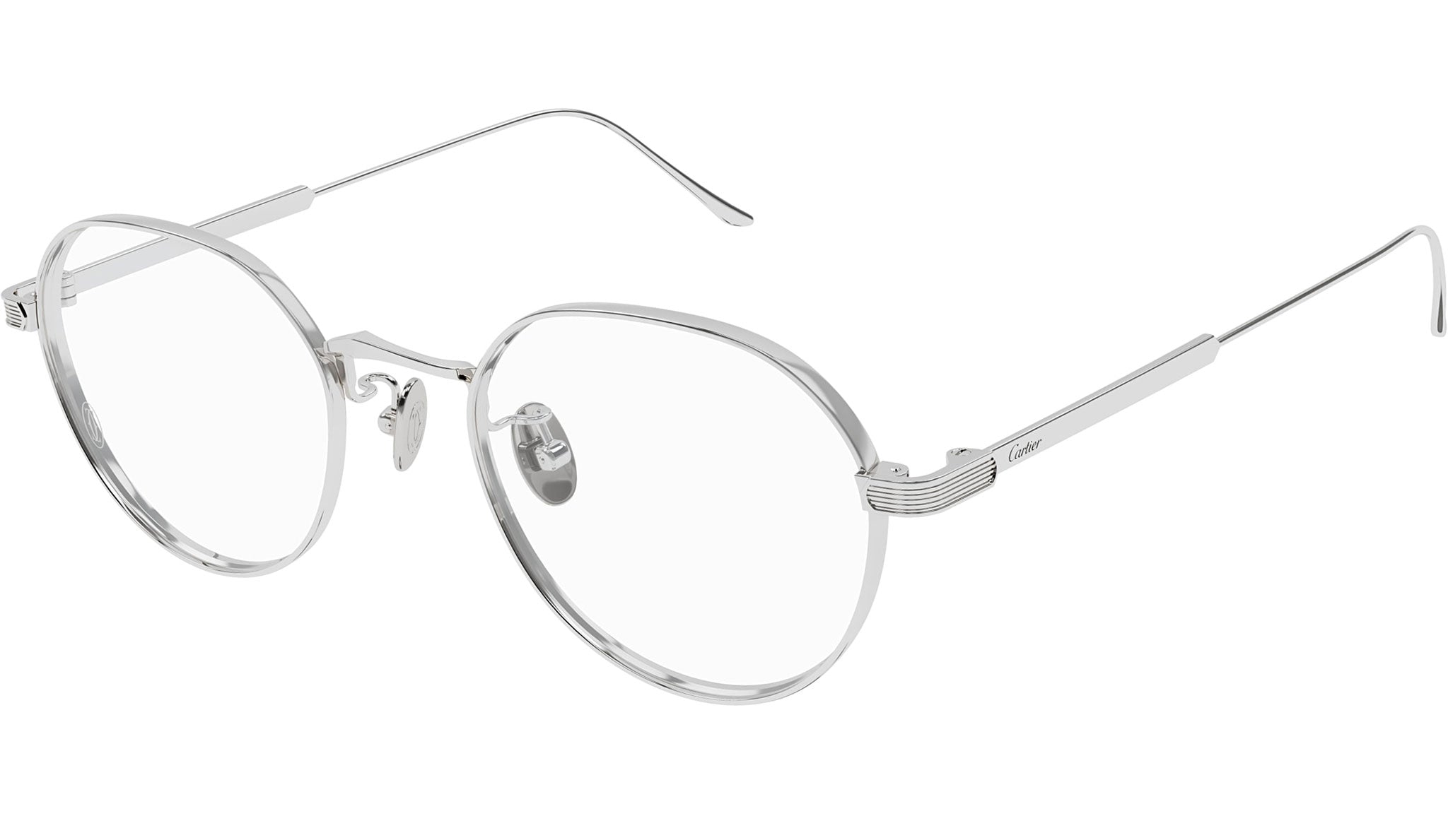 Occhiali da vista Cartier CT0561OA 002 unisex con montatura ovale in titanio platino e lenti demo. Linea: Core Range. Codice modello: CT0561OA. Codice colore: 002. Made in Japan. Rivenditore autorizzato Cartier online. Gli occhiali vengono consegnati con custodia e accessori originali e sono coperti dalla garanzia ufficiale di 12 mesi del produttore.