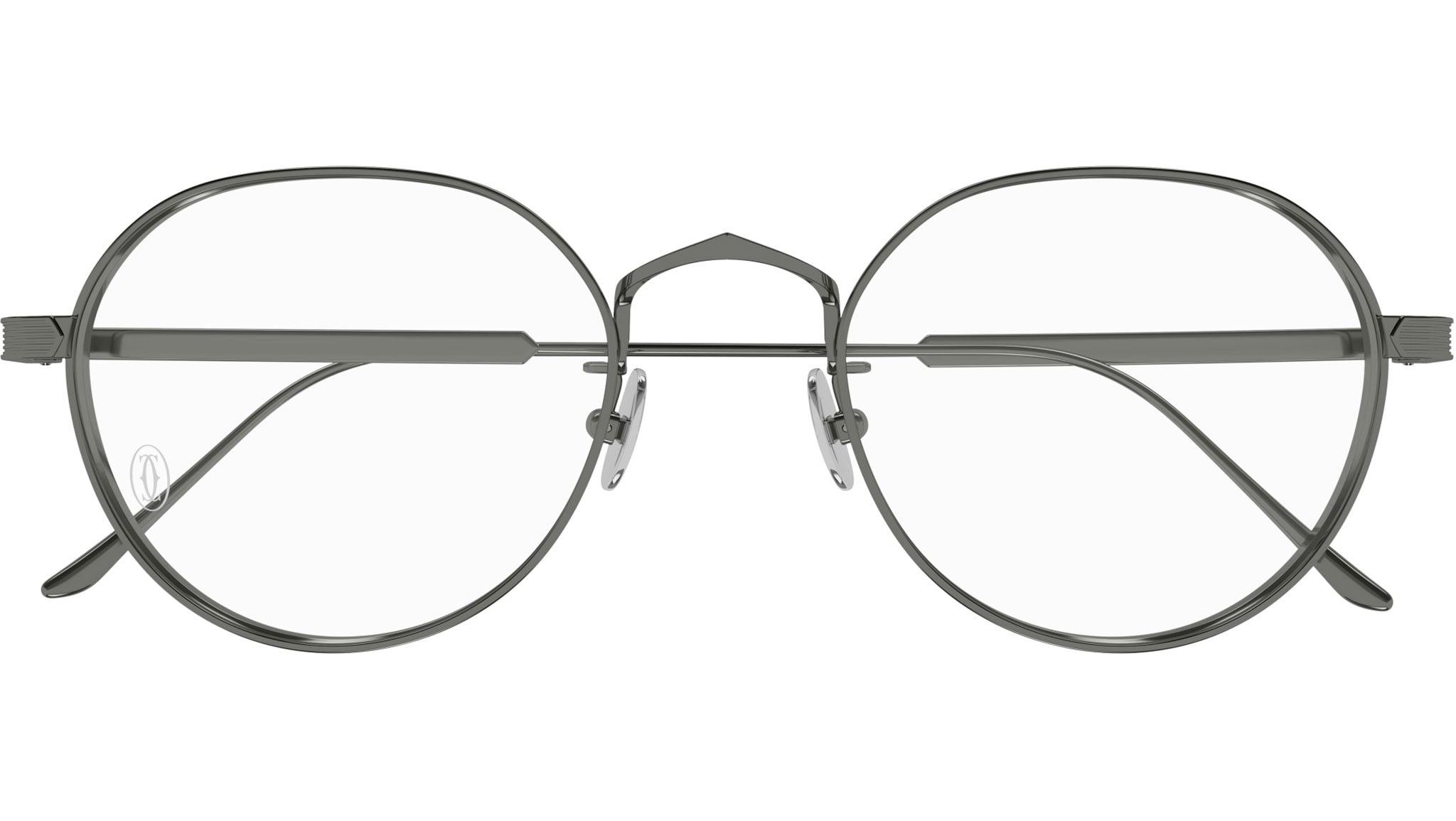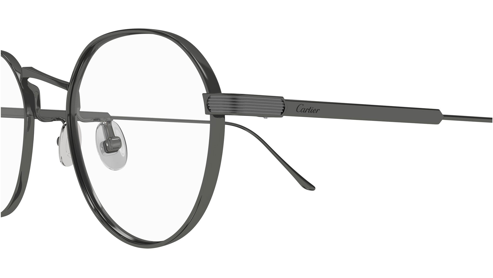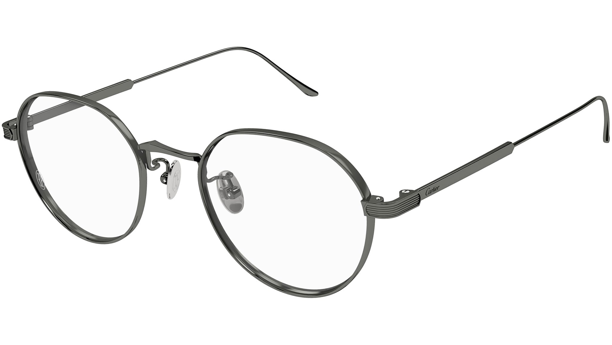 Occhiali da vista Cartier CT0561OA 003 unisex con montatura ovale in titanio rutenio e lenti demo. Linea: Core Range. Codice modello: CT0561OA. Codice colore: 003. Made in Japan. Rivenditore autorizzato Cartier online. Gli occhiali vengono consegnati con custodia e accessori originali e sono coperti dalla garanzia ufficiale di 12 mesi del produttore.