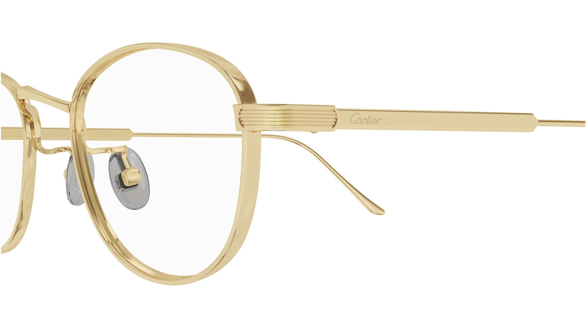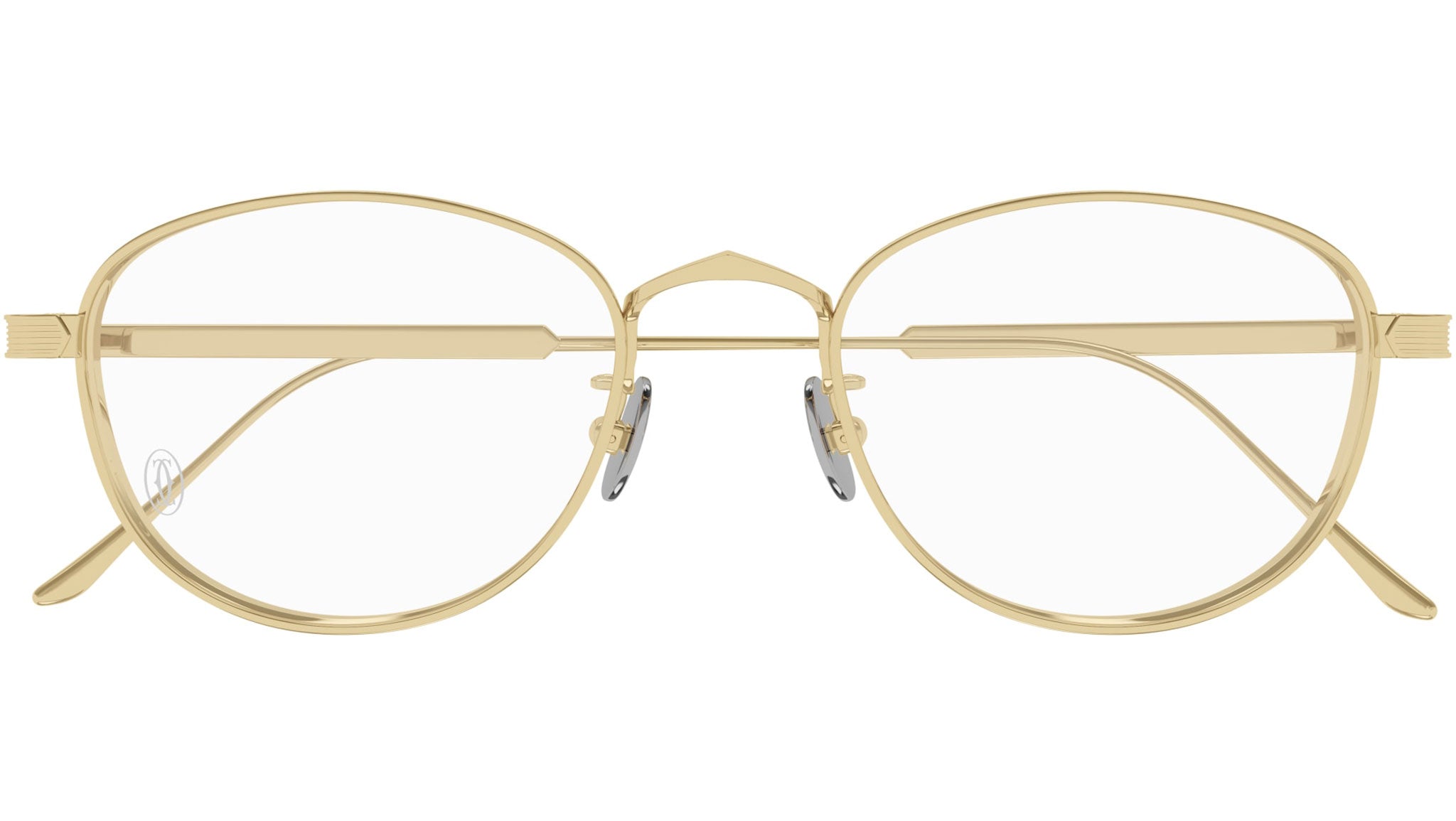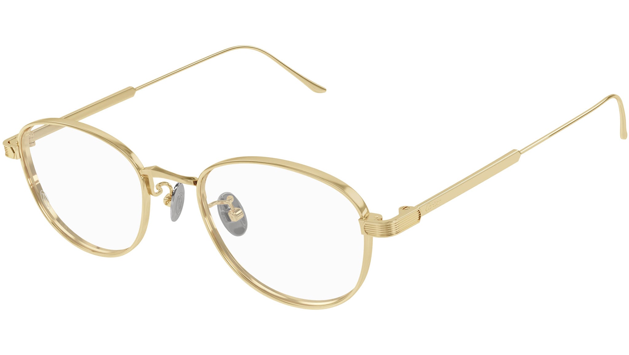 Occhiali da vista Cartier CT0562OA 001 unisex con montatura ovale in titanio oro e lenti demo. Linea: Core Range. Codice modello: CT0562OA. Codice colore: 001. Made in Japan. Rivenditore autorizzato Cartier online. Gli occhiali vengono consegnati con custodia e accessori originali e sono coperti dalla garanzia ufficiale di 12 mesi del produttore.