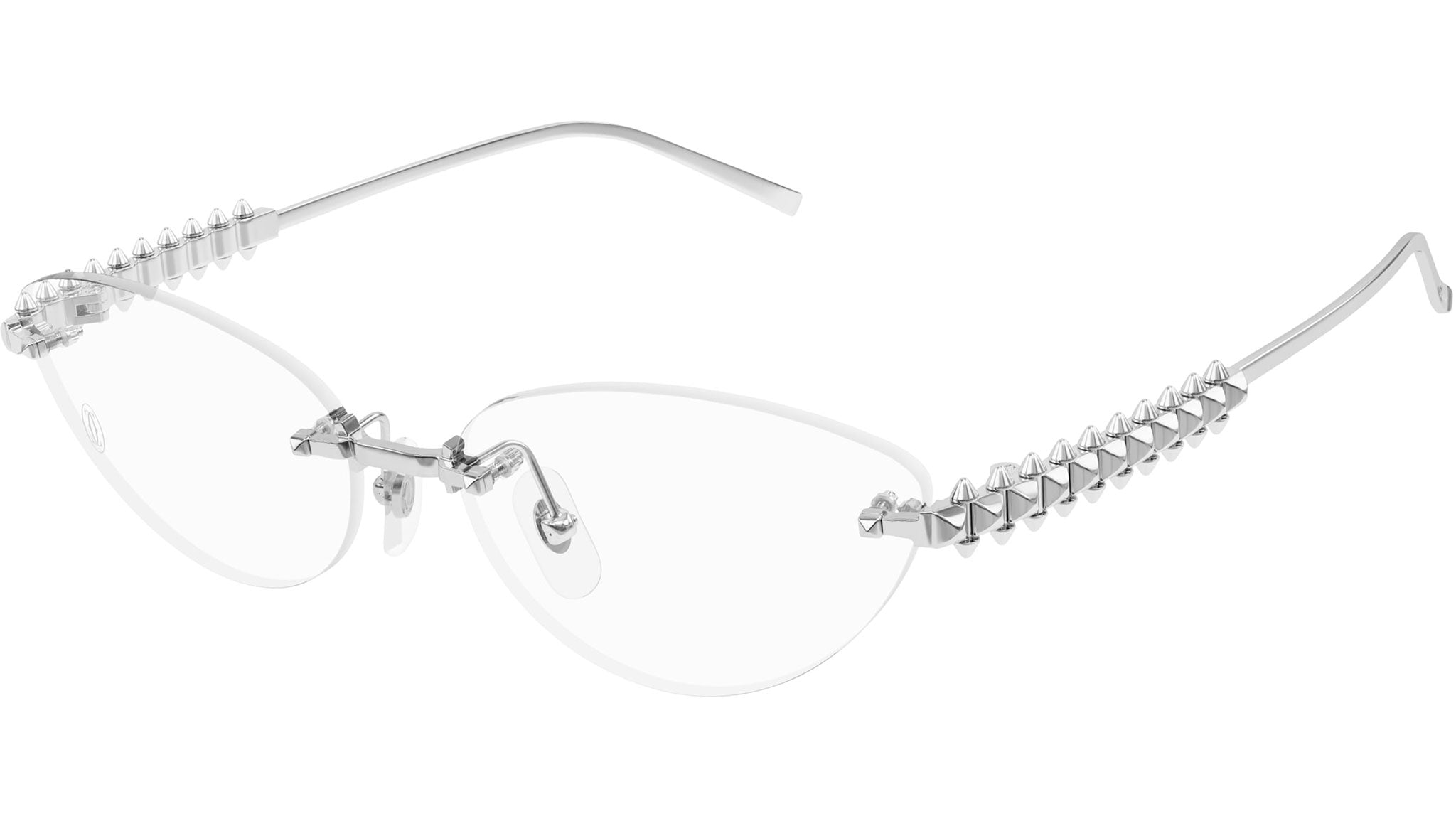 Occhiali da vista Cartier CT0565O 002 donna con montatura cat eye in metallo platino e lenti demo. Linea: Exception. Codice modello: CT0565O. Codice colore: 002. Made in France. Rivenditore autorizzato Cartier online. Gli occhiali vengono consegnati con custodia e accessori originali e sono coperti dalla garanzia ufficiale di 12 mesi del produttore.
