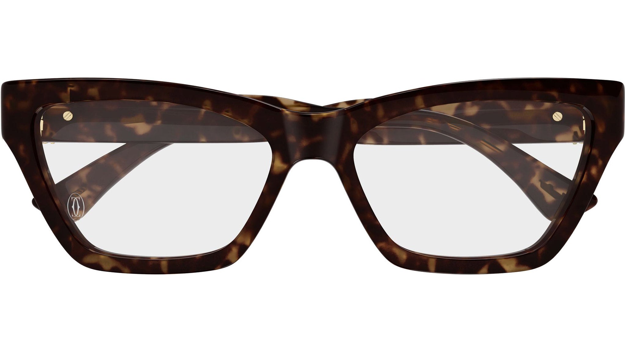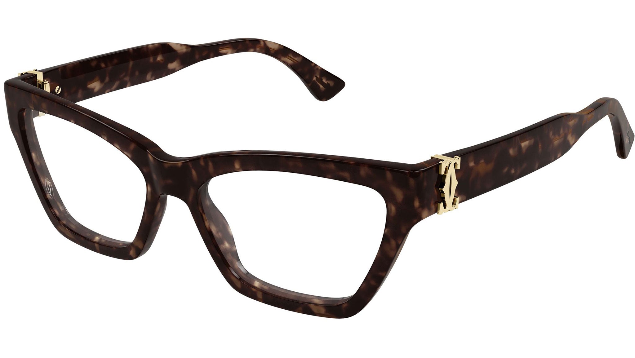 Occhiali da vista Cartier CT0590O 002 donna con montatura cat eye in acetato riciclato color tartaruga scuro e lenti demo. Linea: Contemporary. Codice modello: CT0590O. Codice colore: 002. Made in Italy. Rivenditore autorizzato Cartier online. Gli occhiali vengono consegnati con custodia e accessori originali e sono coperti dalla garanzia ufficiale di 12 mesi del produttore.
