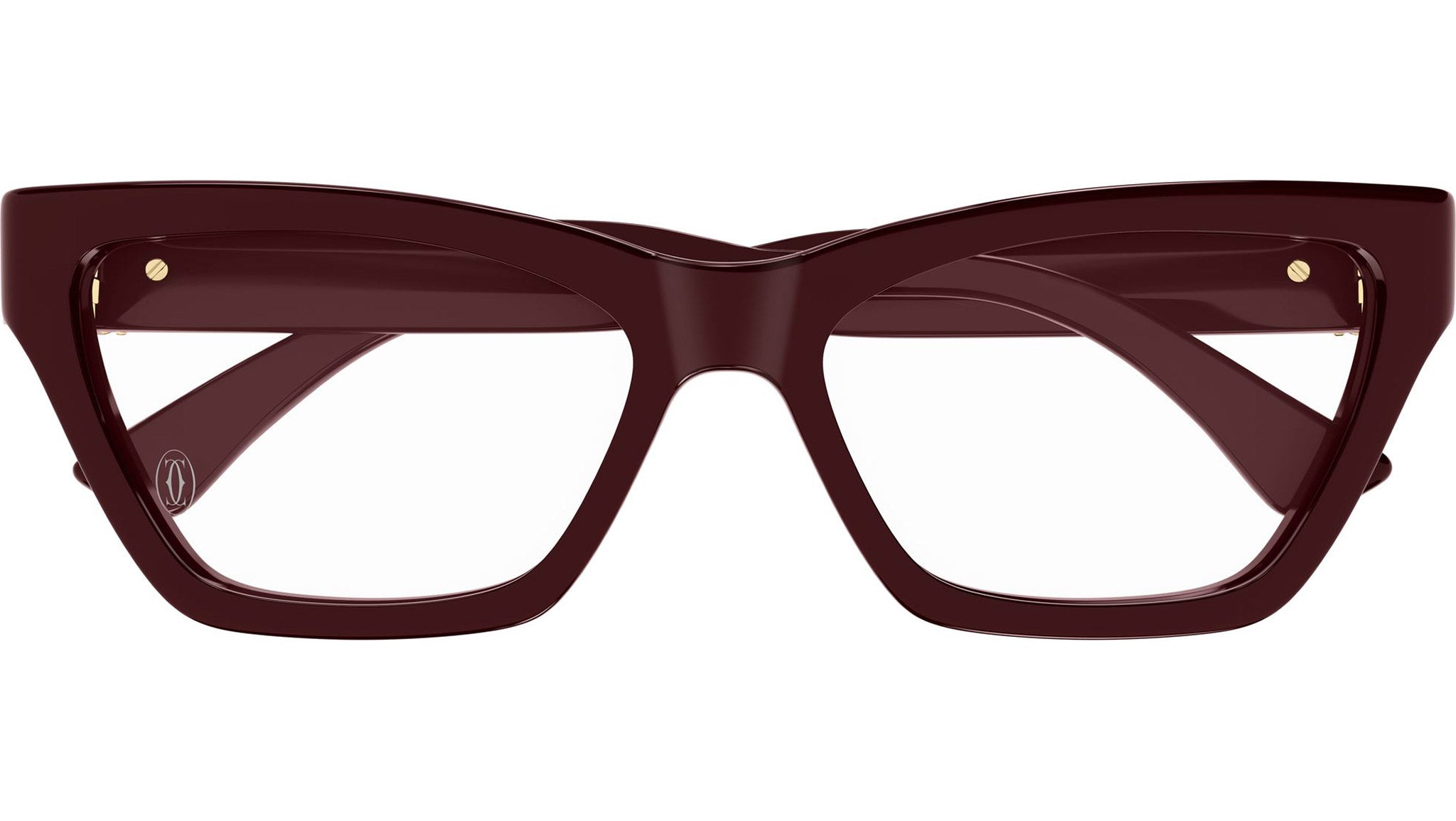 Occhiali da vista Cartier CT0590O 003 donna con montatura cat eye in acetato riciclato color bordeaux e lenti demo. Linea: Contemporary. Codice modello: CT0590O. Codice colore: 003. Made in Italy. Rivenditore autorizzato Cartier online. Gli occhiali vengono consegnati con custodia e accessori originali e sono coperti dalla garanzia ufficiale di 12 mesi del produttore.