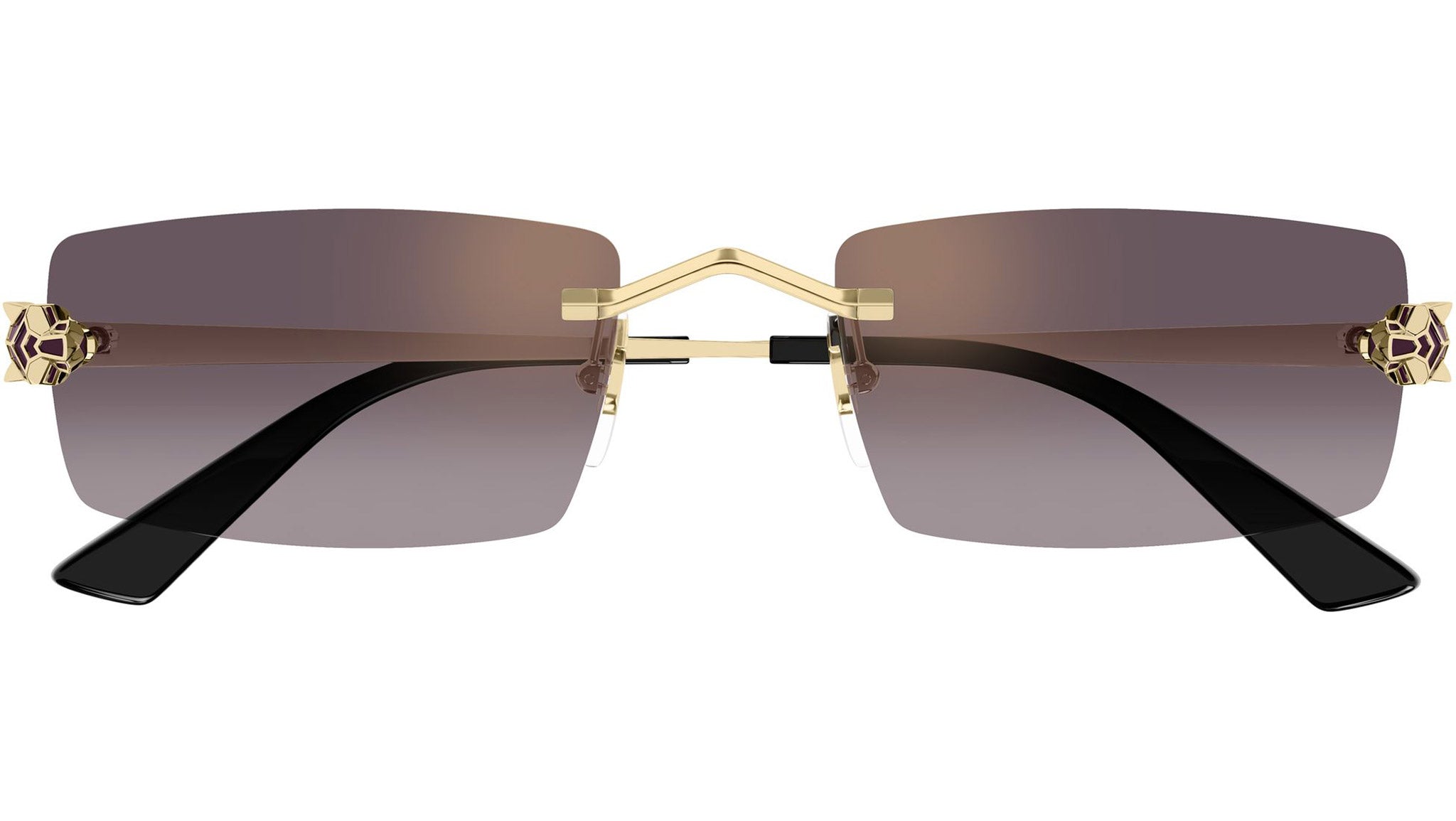 Occhiali da sole Cartier CT0598S 005 unisex con montatura rettangolare in metallo color oro finitura smooth e lenti malva scuro e grigio chiaro sfumati con flash dorato. Linea: Exception. Codice modello: CT0598S. Codice colore: 005. Made in Italy. Rivenditore autorizzato Cartier online. Gli occhiali vengono consegnati con custodia e accessori originali e sono coperti dalla garanzia ufficiale di 12 mesi del produttore.