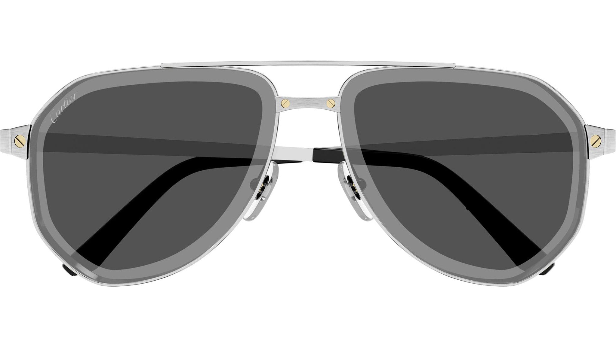 Occhiali da sole Cartier CT0461S 006 uomo con montatura aviatore in metallo color platino satinato satinato e lenti grigio con effetto specchiato shape in shape argento. Linea: Exception. Codice modello: CT0461S. Codice colore: 006. Made in France. Rivenditore autorizzato Cartier online. Gli occhiali vengono consegnati con custodia e accessori originali e sono coperti dalla garanzia ufficiale di 12 mesi del produttore.