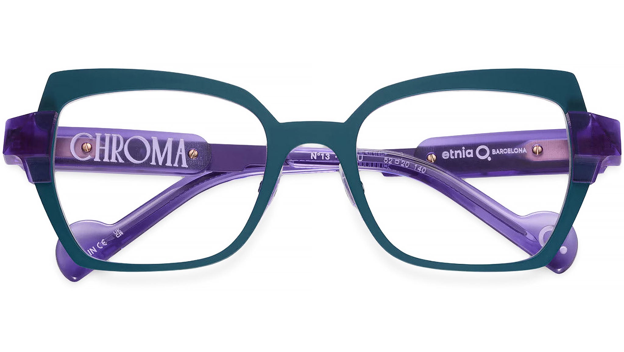 Occhiali da vista Etnia Barcelona CHROMA N13 in acetato blu / viola con lenti demo. Codice modello: CHROMA N13. Codice colore: PTPU. Rivenditore autorizzato online Etnia Barcelona. Gli occhiali vengono forniti con custodia e accessori originali e sono coperti dalla garanzia standard del produttore di 12 mesi.