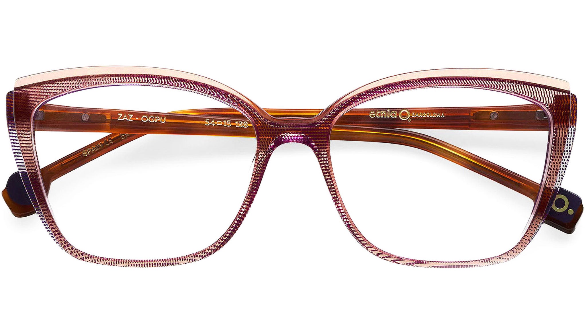 Occhiali da vista Etnia Barcelona ZAZ in acetato arancione / viola con lenti demo. Codice modello: ZAZ 54O. Codice colore: OGPU. Rivenditore autorizzato online Etnia Barcelona. Gli occhiali vengono forniti con custodia e accessori originali e sono coperti dalla garanzia standard del produttore di 12 mesi.