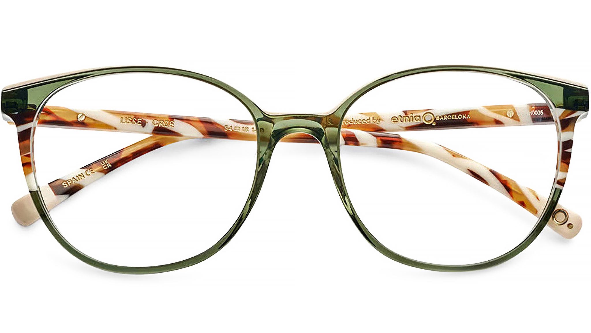 Occhiali da vista Etnia Barcelona LISSE in acetato verde / zebra con lenti demo. Codice modello: LISSE 54O. Codice colore: GRZE. Rivenditore autorizzato online Etnia Barcelona. Gli occhiali vengono forniti con custodia e accessori originali e sono coperti dalla garanzia standard del produttore di 12 mesi.