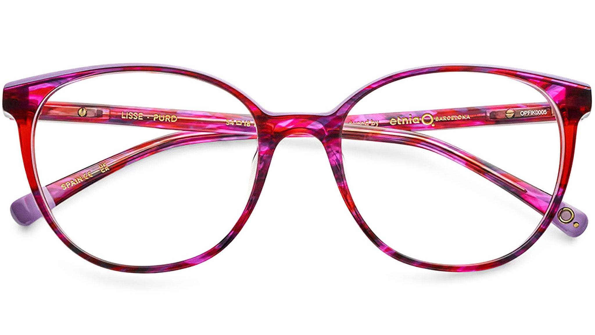 Occhiali da vista Etnia Barcelona LISSE in acetato viola / rosso con lenti demo. Codice modello: LISSE 54O. Codice colore: PURD. Rivenditore autorizzato online Etnia Barcelona. Gli occhiali vengono forniti con custodia e accessori originali e sono coperti dalla garanzia standard del produttore di 12 mesi.