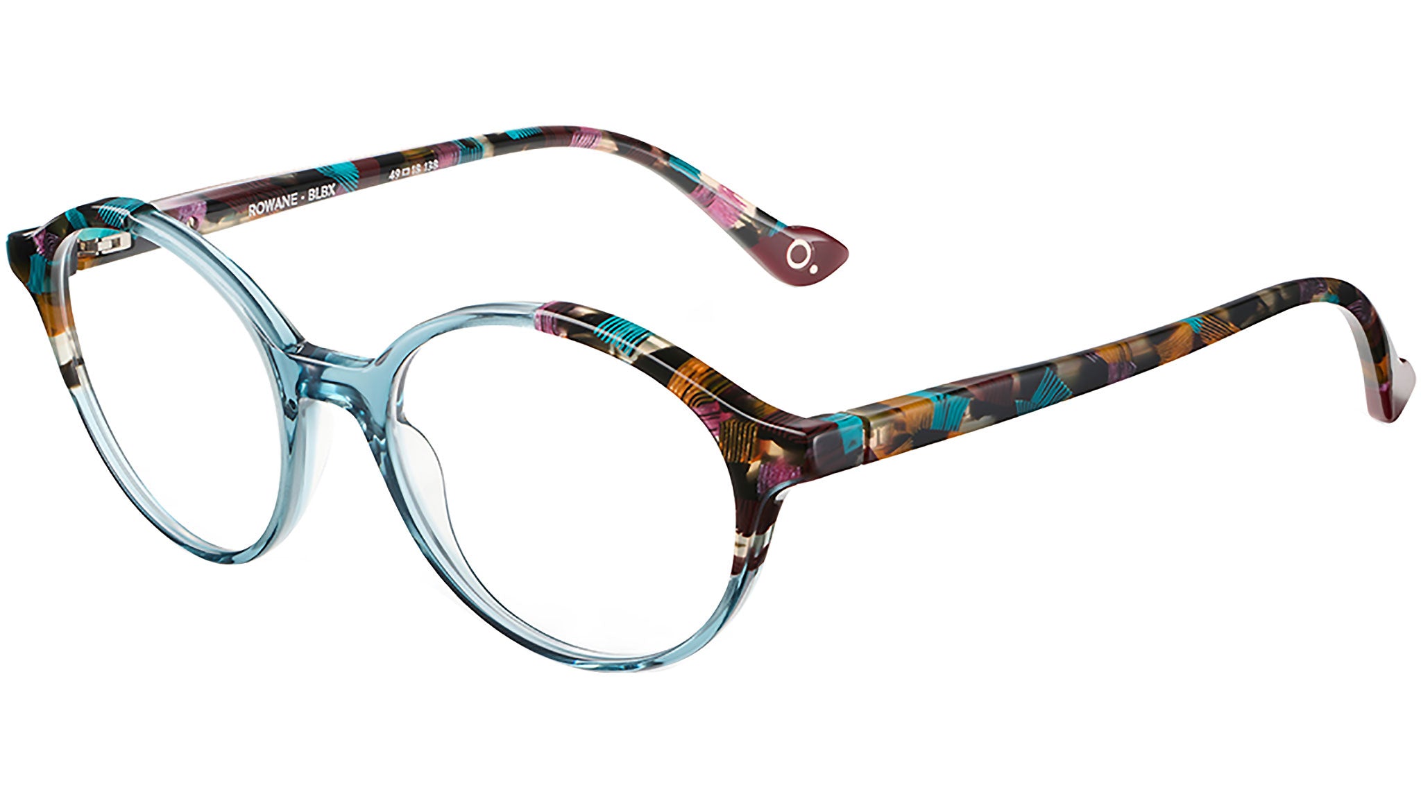 Occhiali da vista Etnia Barcelona ROWANE in acetato blu / multi con lenti demo. Codice modello: ROWANE 49O. Codice colore: BLBX. Rivenditore autorizzato online Etnia Barcelona. Gli occhiali vengono forniti con custodia e accessori originali e sono coperti dalla garanzia standard del produttore di 12 mesi.