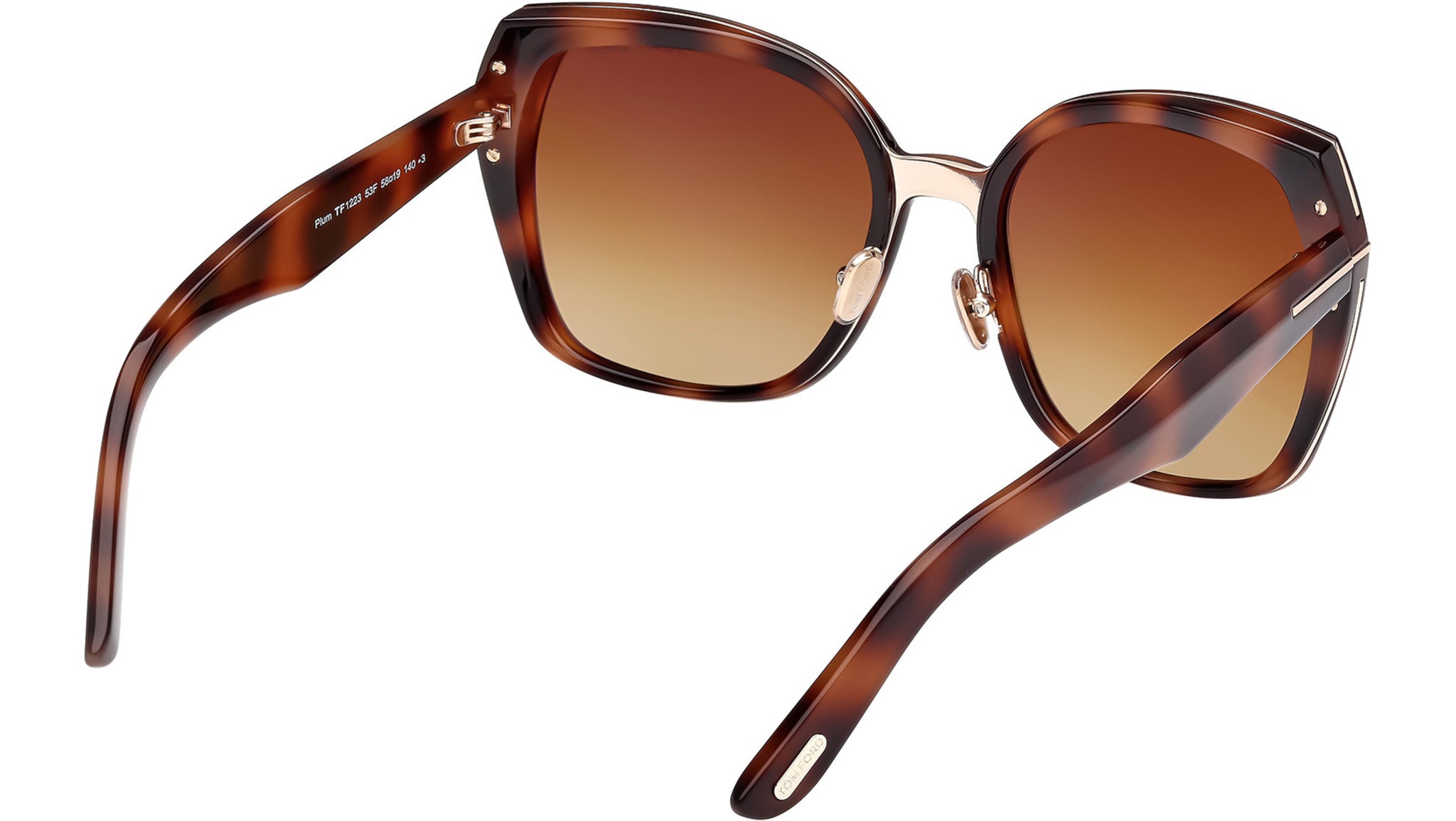 Occhiali da sole Tom Ford donna modello FT1223 con montatura avana chiaro full-rim in inietatto e lenti color marrone sfumato. Codice Brand: 1223. Codice colore: 53F. Rivenditore autorizzato Tom Ford online. Gli occhiali vengono consegnati con custodia e accessori originali e sono coperti da garanzia standard di 12 mesi del produttore.