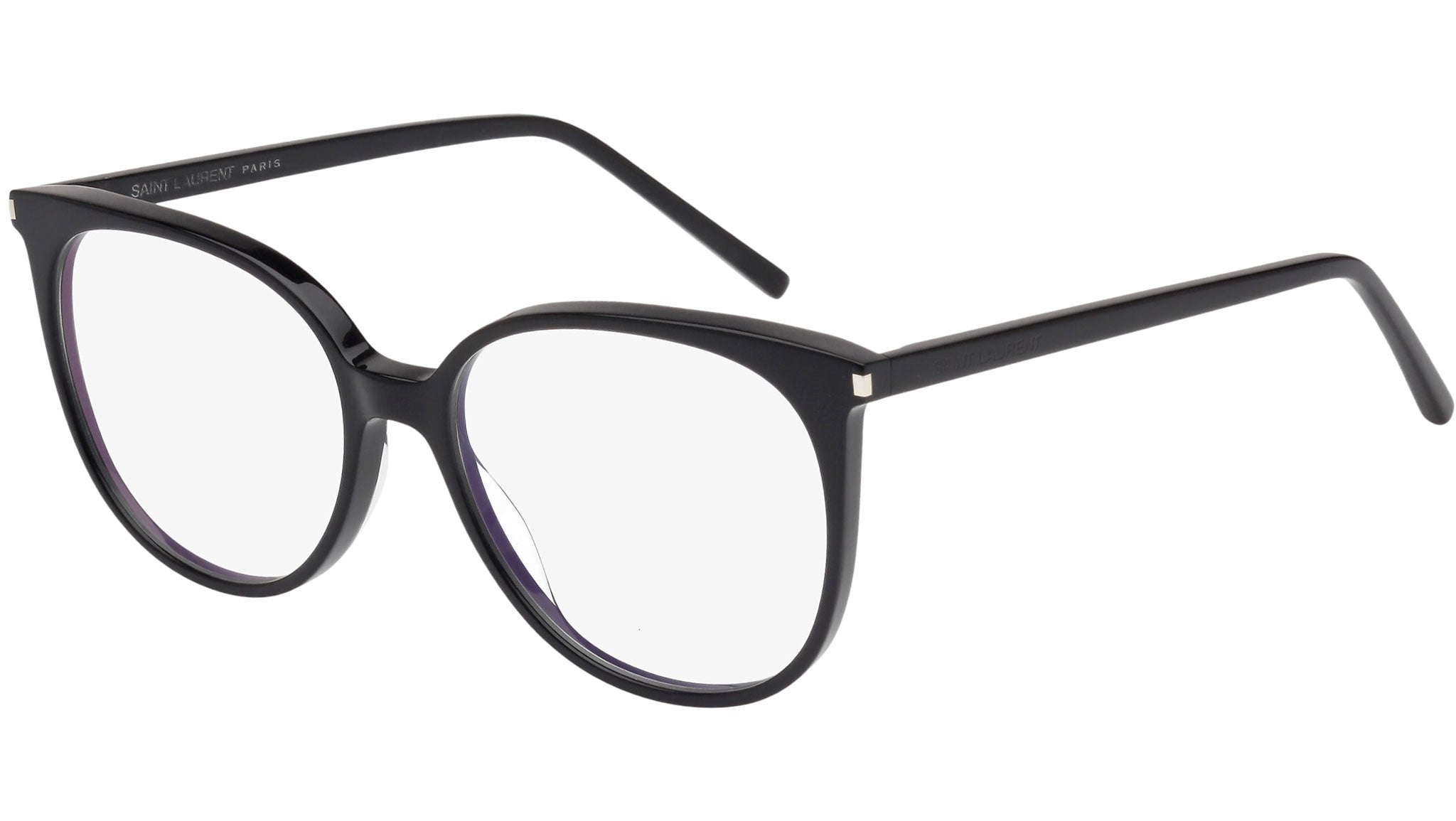 Occhiali da vista Saint Laurent SL 39 001 donna con montatura ovale in acetato riciclato nero e lenti demo. Linea: Corner Angle. Codice modello: SL 39. Codice colore: 001. Made in Italy. Rivenditore autorizzato Saint Laurent online. Gli occhiali vengono consegnati con custodia e accessori originali e sono coperti dalla garanzia ufficiale di 12 mesi del produttore.