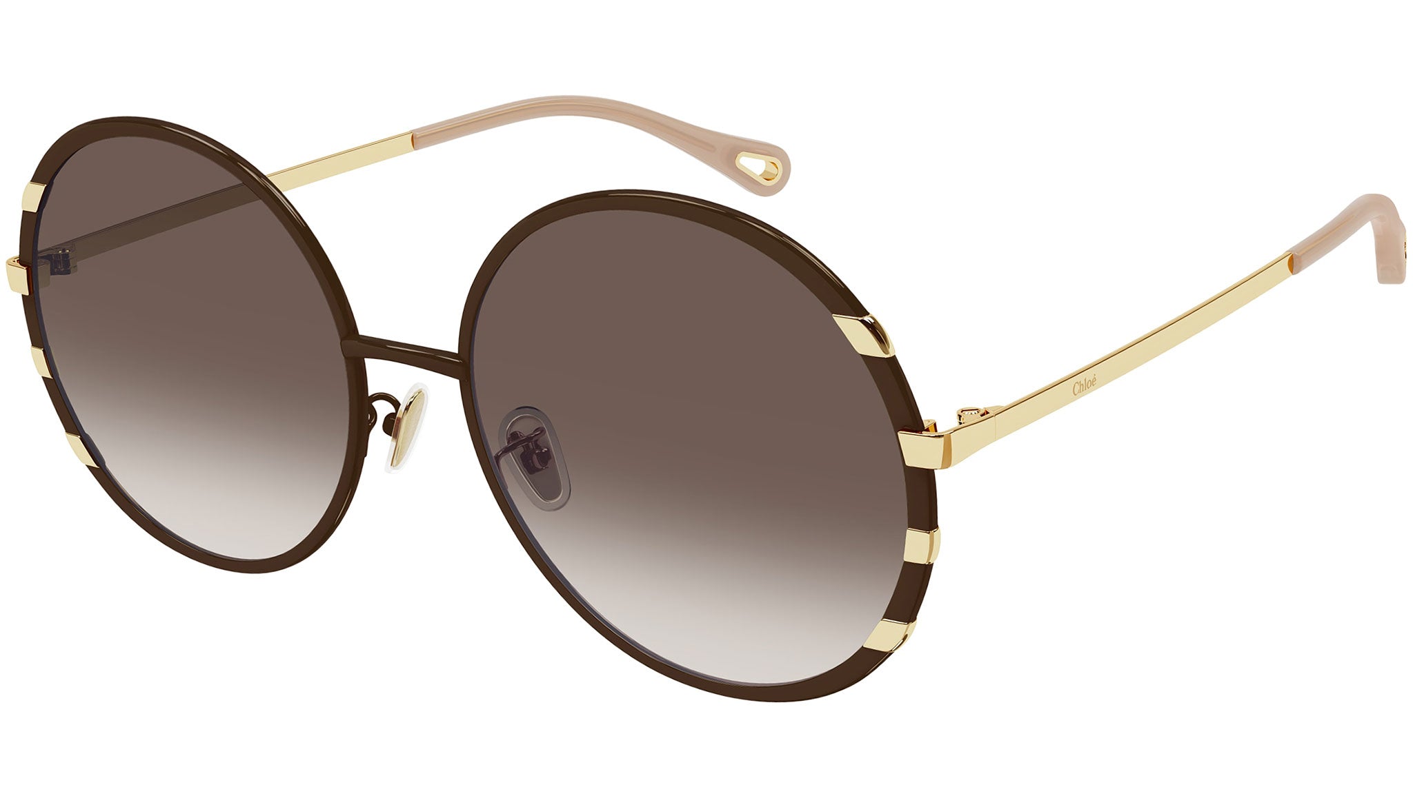 Occhiali da sole Chloé CH0144S 001 donna con montatura pantos in metallo marrone effetto vernice e lenti marrone sfumato. Linea: Chloé. Codice modello: CH0144S. Codice colore: 001. Made in Italy. Rivenditore autorizzato Chloé online. Gli occhiali vengono consegnati con custodia e accessori originali e sono coperti dalla garanzia ufficiale di 12 mesi del produttore.