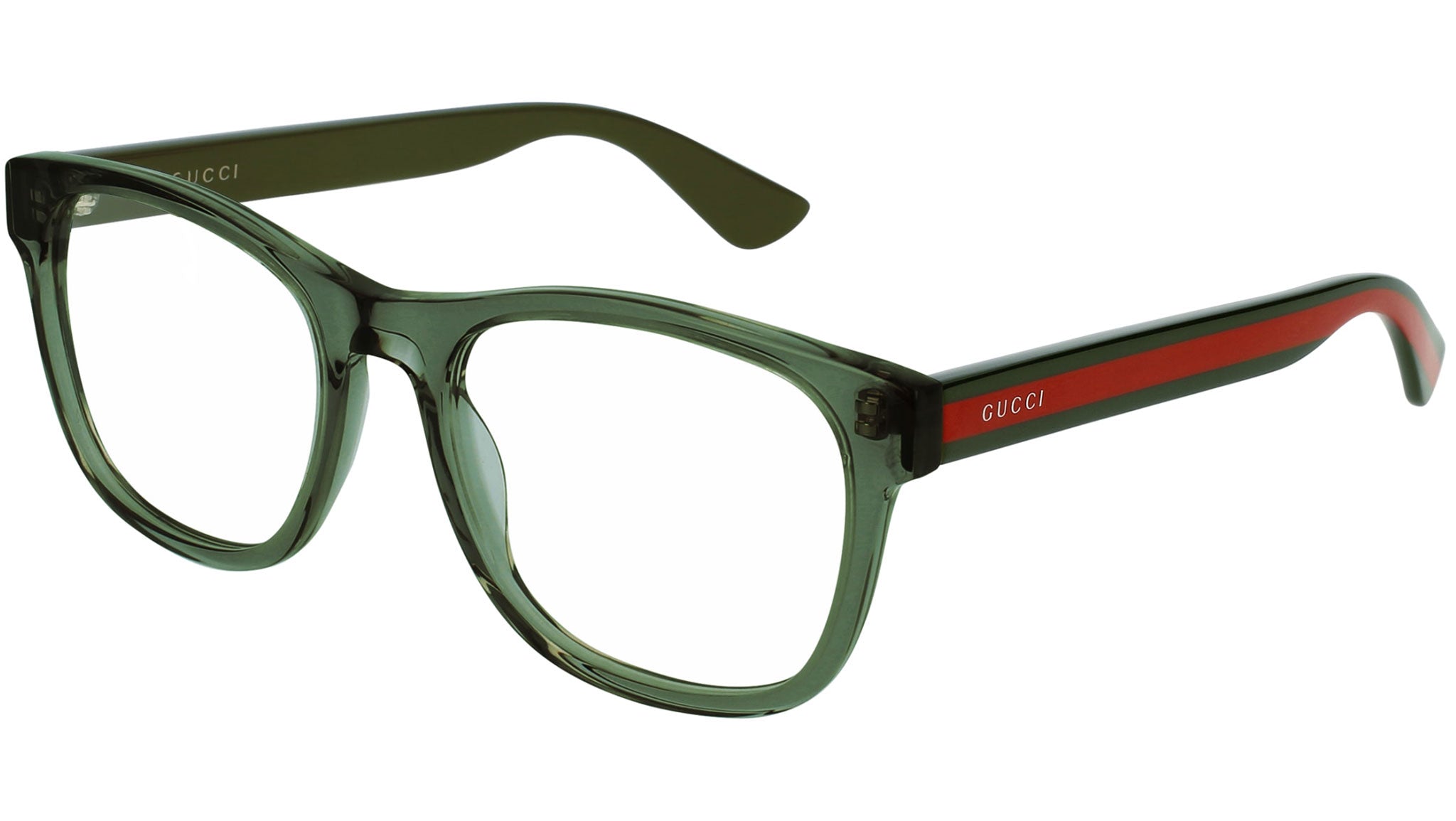 Occhiali da vista Gucci modello GG0004ON linea Web in acetato forma pantos codice colore 011 verde trasparente lucido con aste in verde e lenti demo. Rivenditore autorizzato Gucci online. Gli occhiali vengono consegnati con custodia e accessori originali e sono coperti dalla garanzia ufficiale di 12 mesi del produttore.