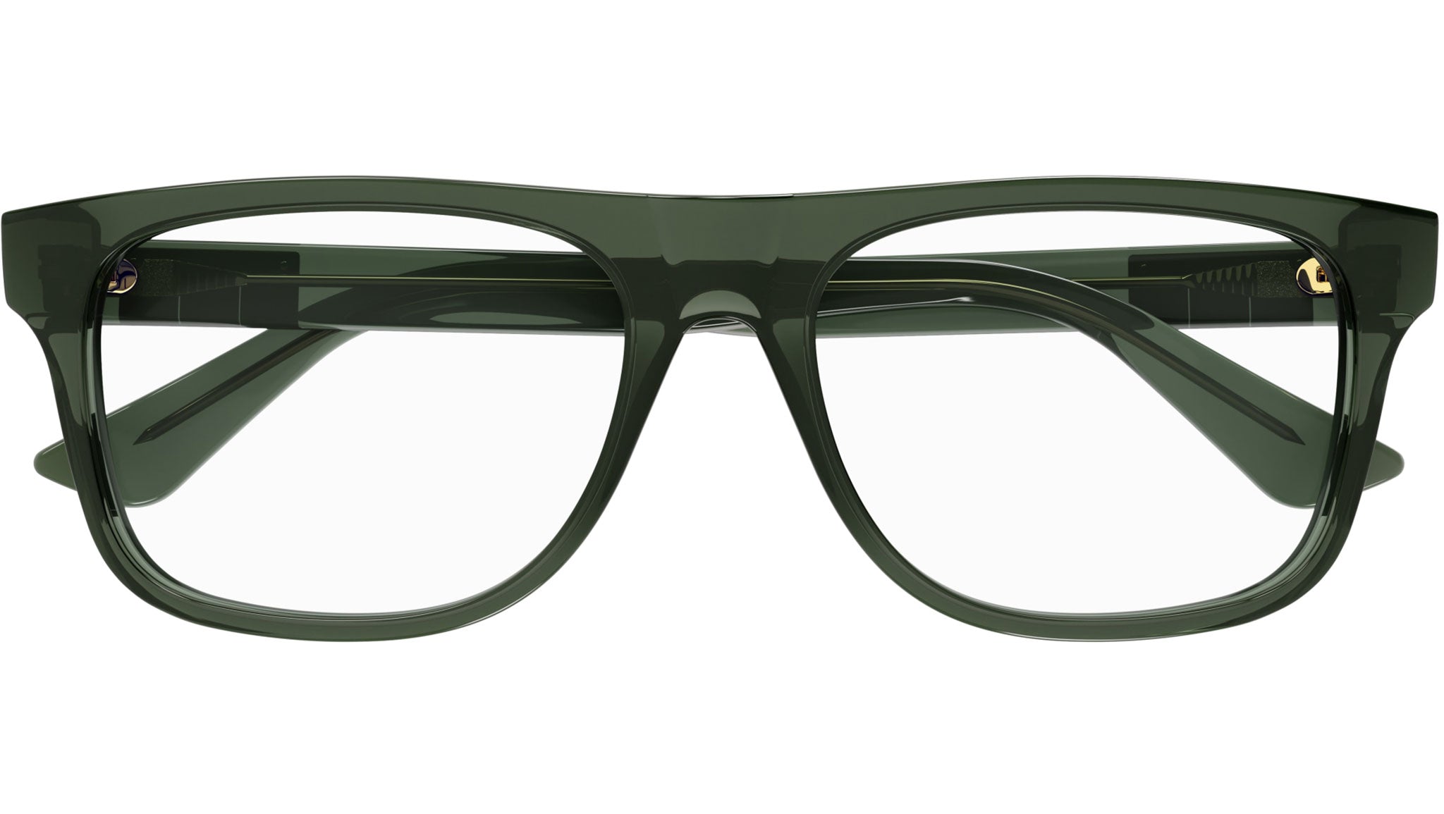 Occhiali da vista Gucci modello GG1117O linea GG Logo in iniettato forma rettangolare codice colore 005 verde trasparente lucido con aste in verde e lenti demo. Rivenditore autorizzato Gucci online. Gli occhiali vengono consegnati con custodia e accessori originali e sono coperti dalla garanzia ufficiale di 12 mesi del produttore.