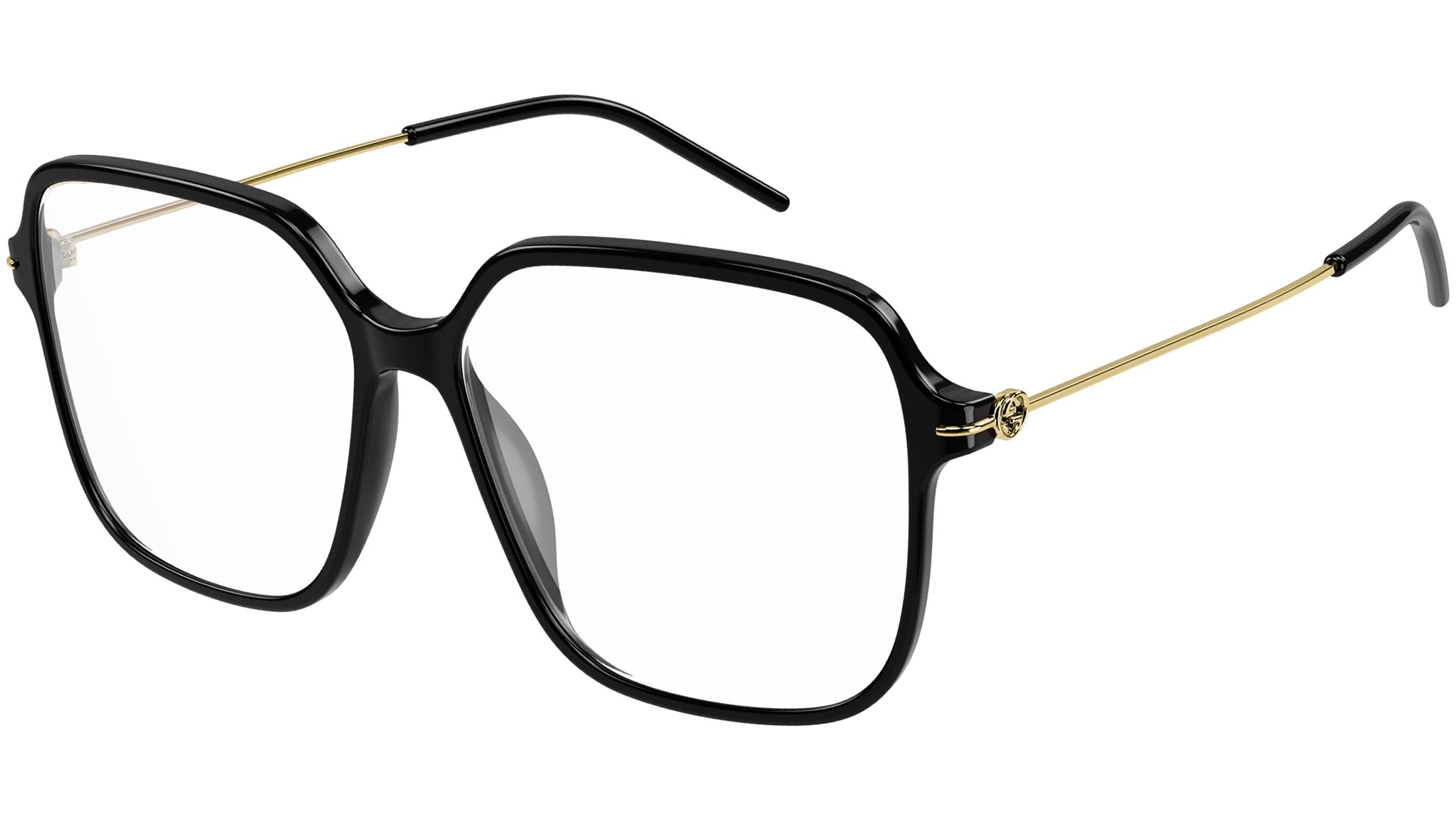 Occhiali da vista linea Gucci Logo modello GG1271O variante colore 001 nero lucido con astine color oro.