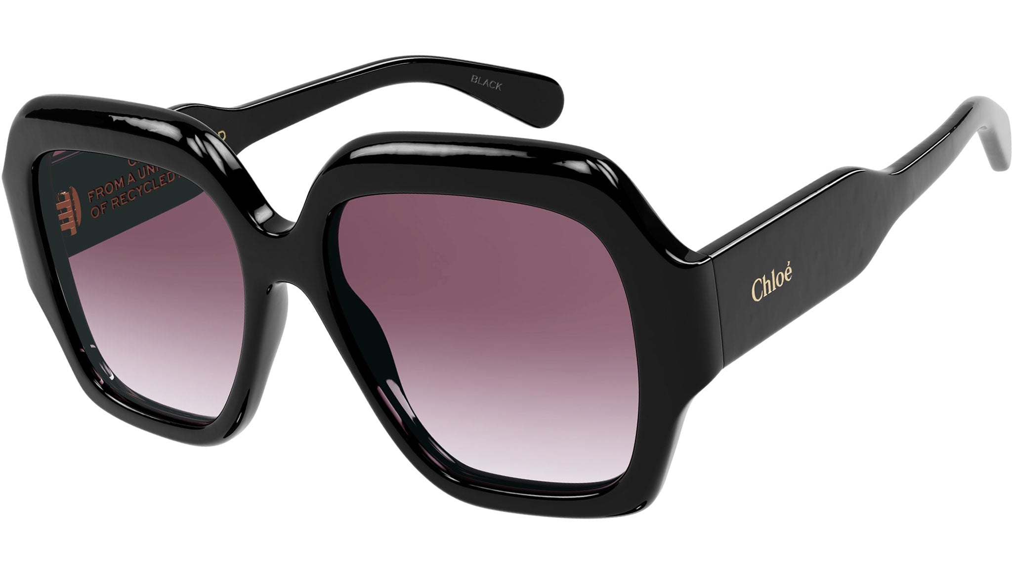 Occhiali da sole Chloé CH0154S 001 donna con montatura rettangolare in acetato riciclato nero lucido tinta unita e lenti bordeaux sfumato. Linea: Chloé. Codice modello: CH0154S. Codice colore: 001. Made in Italy. Rivenditore autorizzato Chloé online. Gli occhiali vengono consegnati con custodia e accessori originali e sono coperti dalla garanzia ufficiale di 12 mesi del produttore.