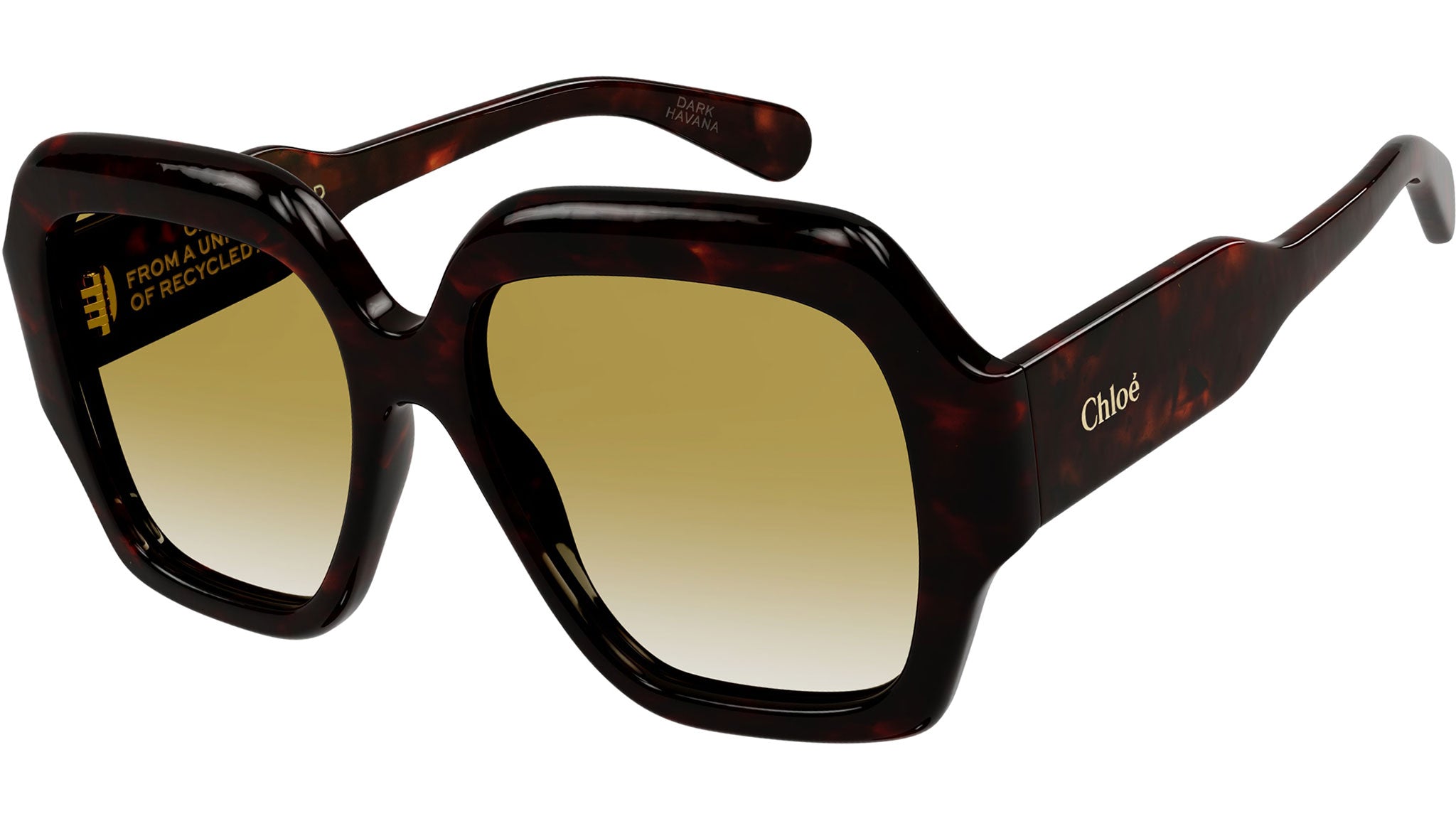 Occhiali da sole Chloé CH0154S 002 donna con montatura rettangolare in acetato riciclato avana scuro lucido e lenti marrone sfumato. Linea: Chloé. Codice modello: CH0154S. Codice colore: 002. Made in Italy. Rivenditore autorizzato Chloé online. Gli occhiali vengono consegnati con custodia e accessori originali e sono coperti dalla garanzia ufficiale di 12 mesi del produttore.