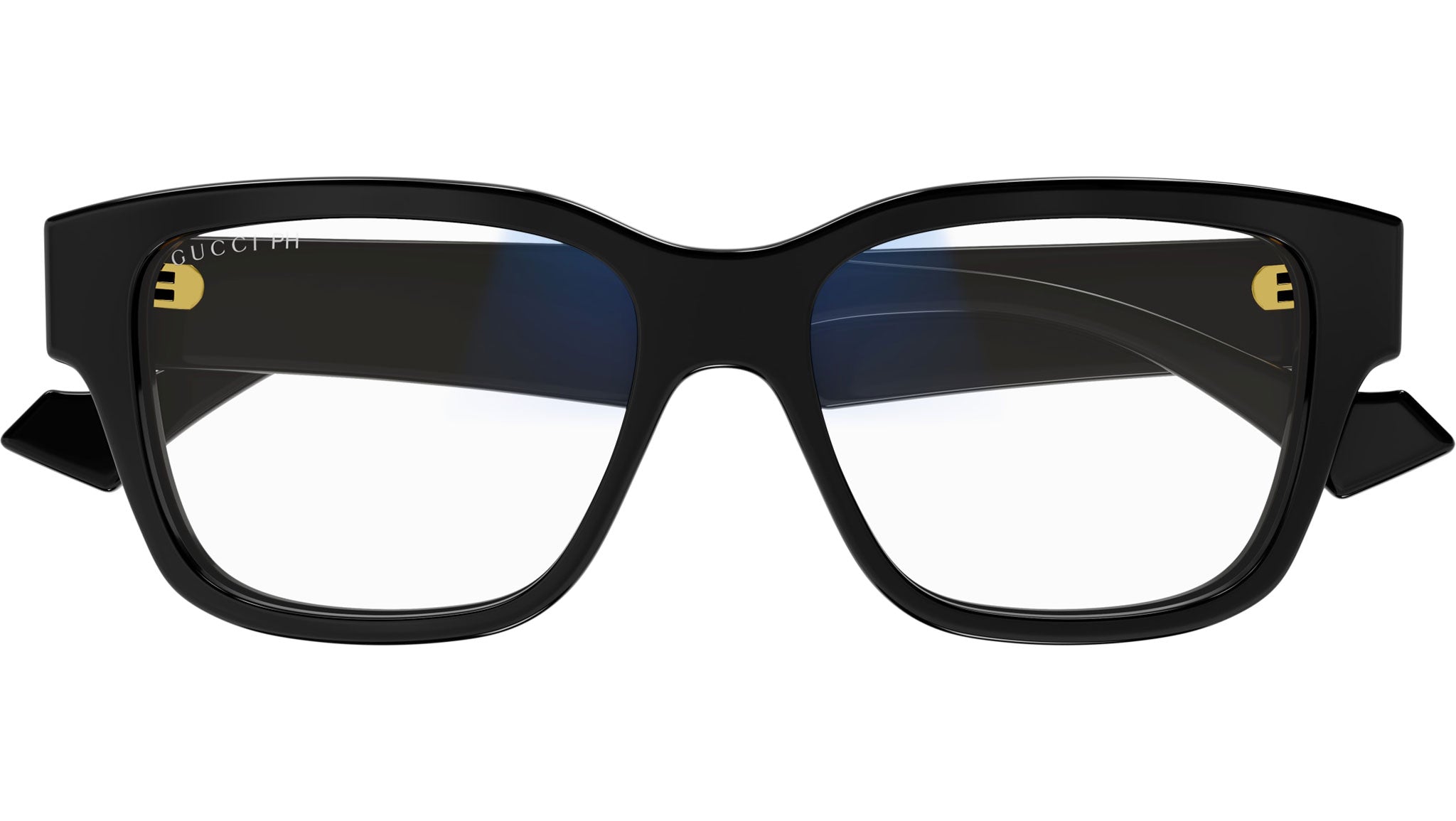 Occhiali da sole Gucci linea Lettering modello GG1428S 001 in acetato riciclato nero lucido tinta unita con aste color nero e lenti verde acqua fotocromatico con riduzione luce blu.