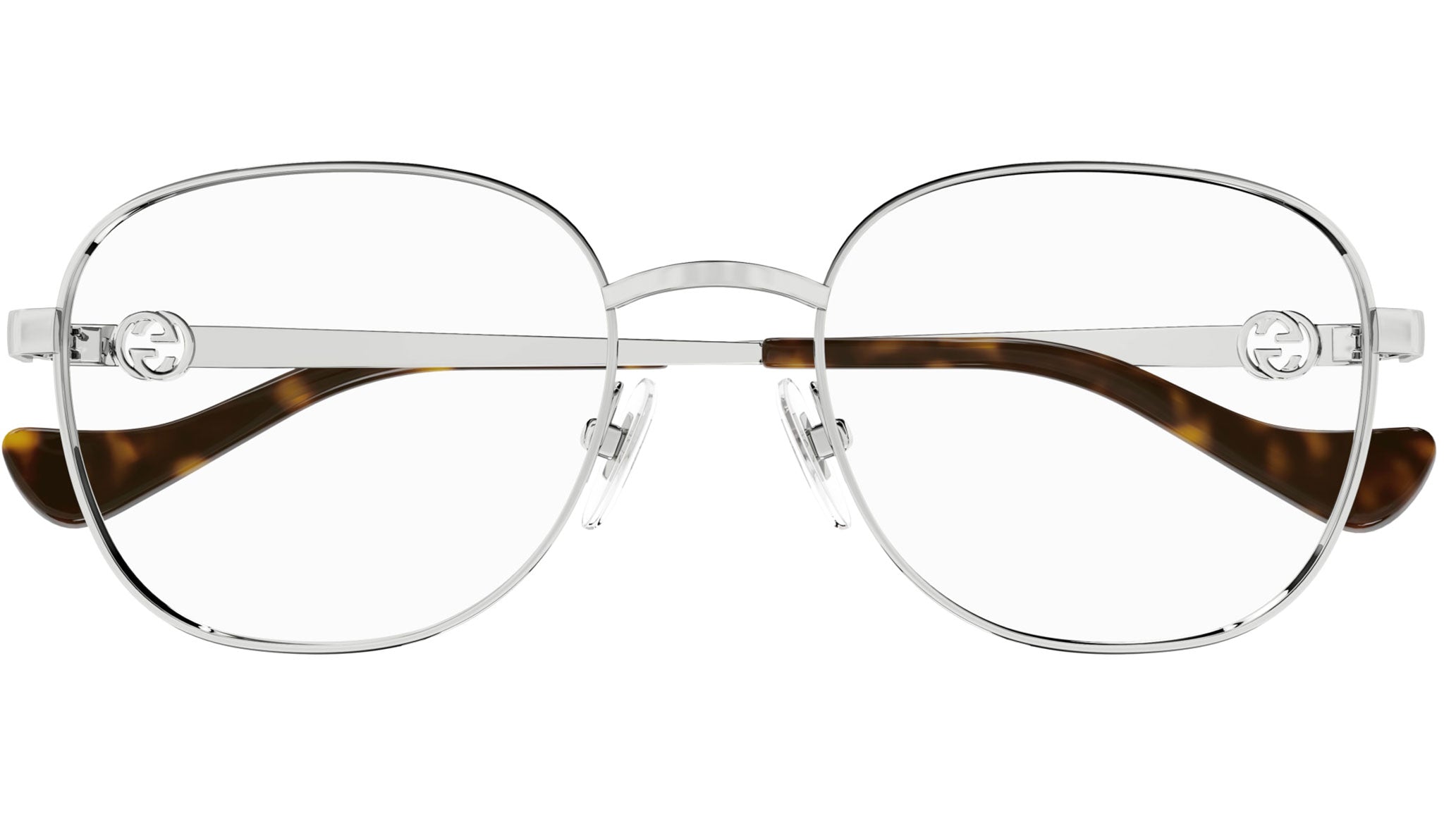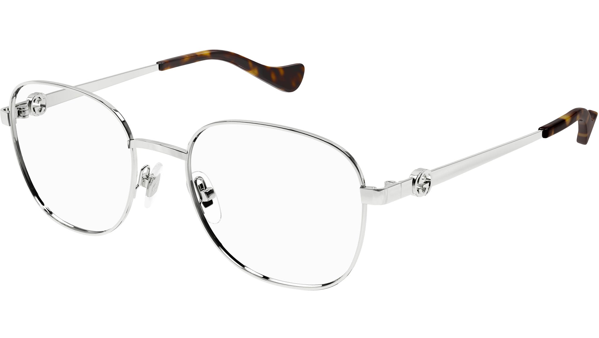 Occhiali da vista Gucci modello GG1602O linea GG Logo in metallo forma pantos codice colore 003 argento lucido con aste in argento e lenti demo. Rivenditore autorizzato Gucci online. Gli occhiali vengono consegnati con custodia e accessori originali e sono coperti dalla garanzia ufficiale di 12 mesi del produttore.