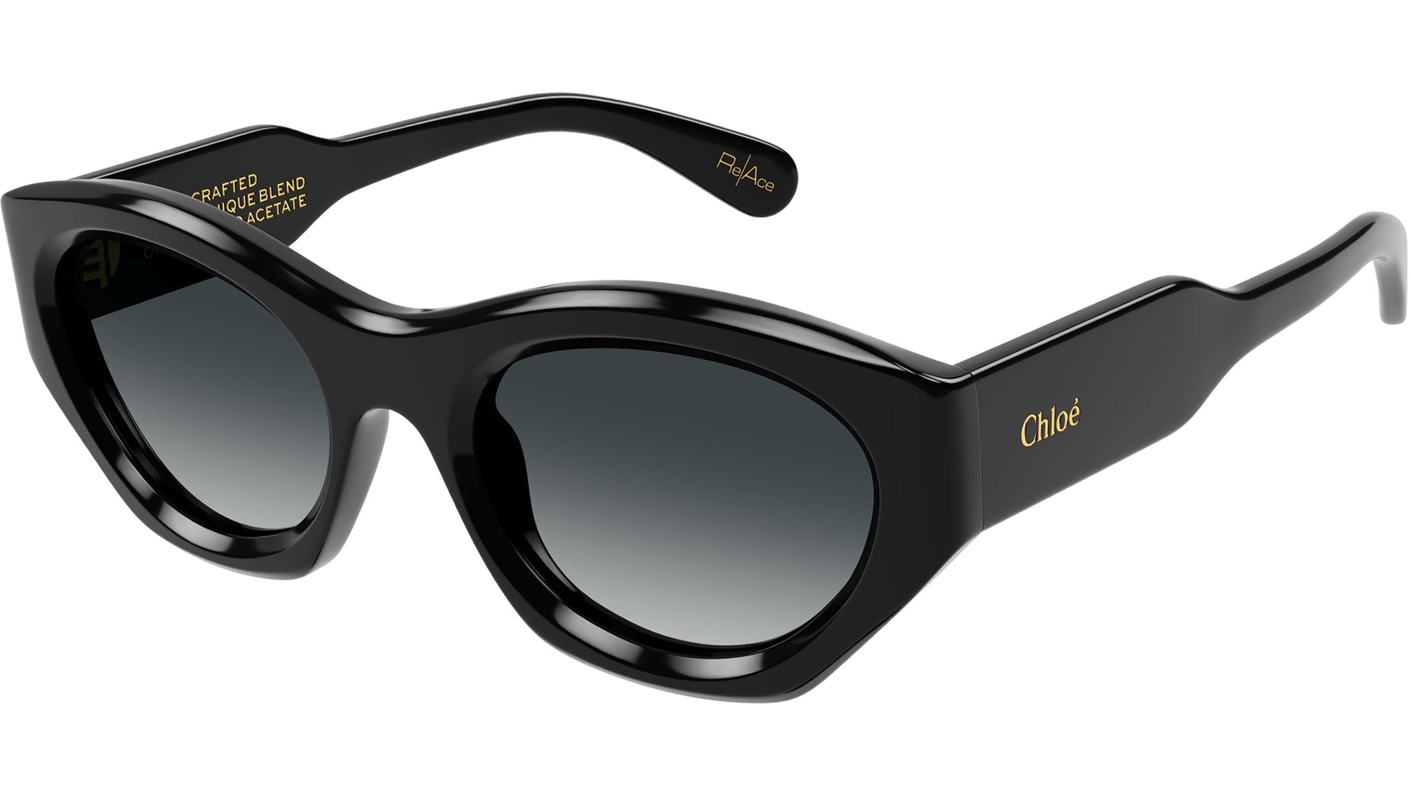 Occhiali da sole Chloé CH0220S 001 donna con montatura cat eye in acetato riciclato nero lucido tinta unita e lenti sfulatura grigio-verde. Linea: Chloé. Codice modello: CH0220S. Codice colore: 001. Made in Italy. Rivenditore autorizzato Chloé online. Gli occhiali vengono consegnati con custodia e accessori originali e sono coperti dalla garanzia ufficiale di 12 mesi del produttore.