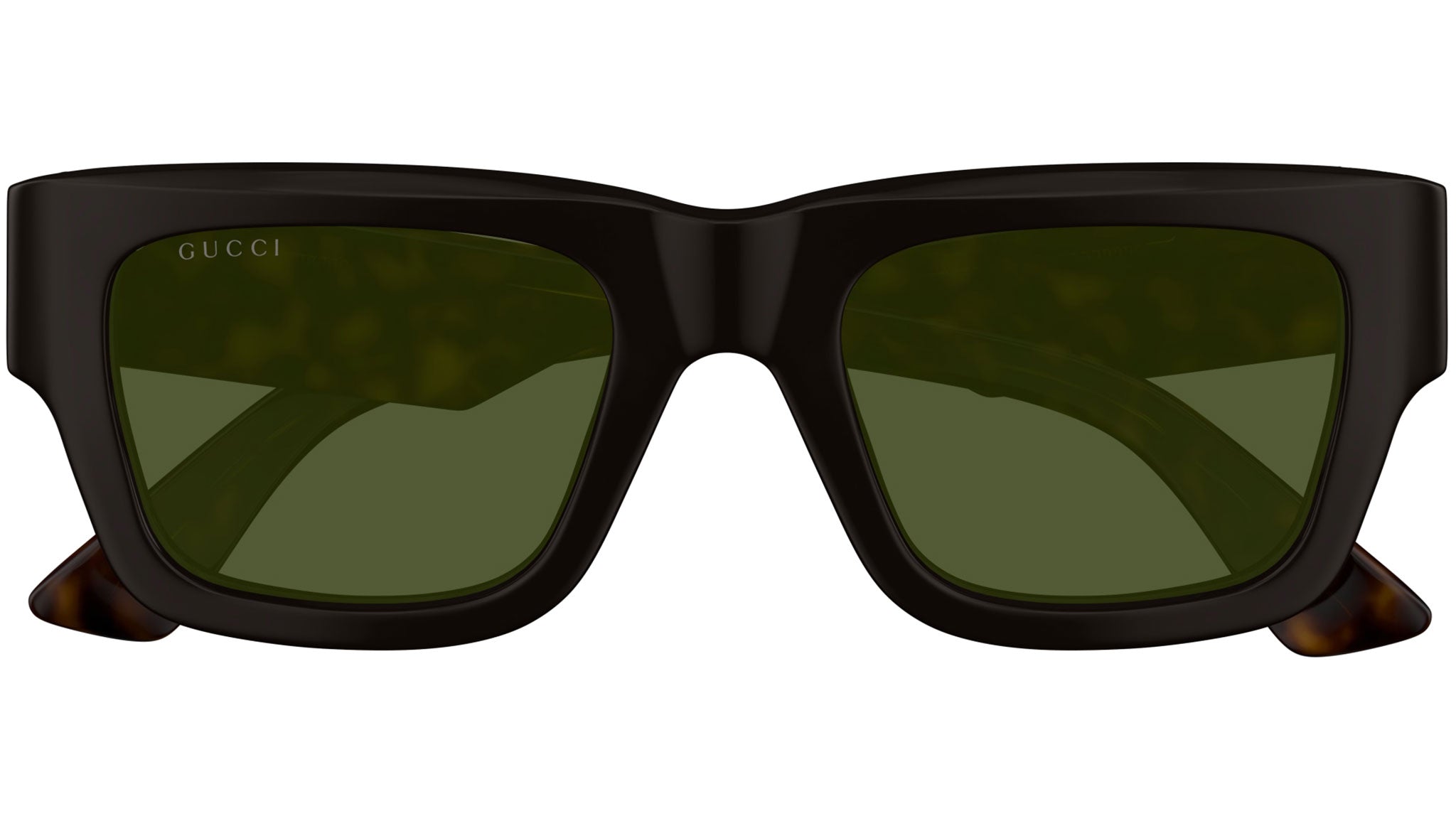 Occhiali da sole Gucci modello GG1668S linea Lettering in acetato riciclato forma rettangolare codice colore 004 marrone lucido tinta unita con aste tartaruga e lenti verde tinta unita. Rivenditore autorizzato Gucci online. Gli occhiali vengono consegnati con custodia e accessori originali e sono coperti dalla garanzia ufficiale di 12 mesi del produttore.