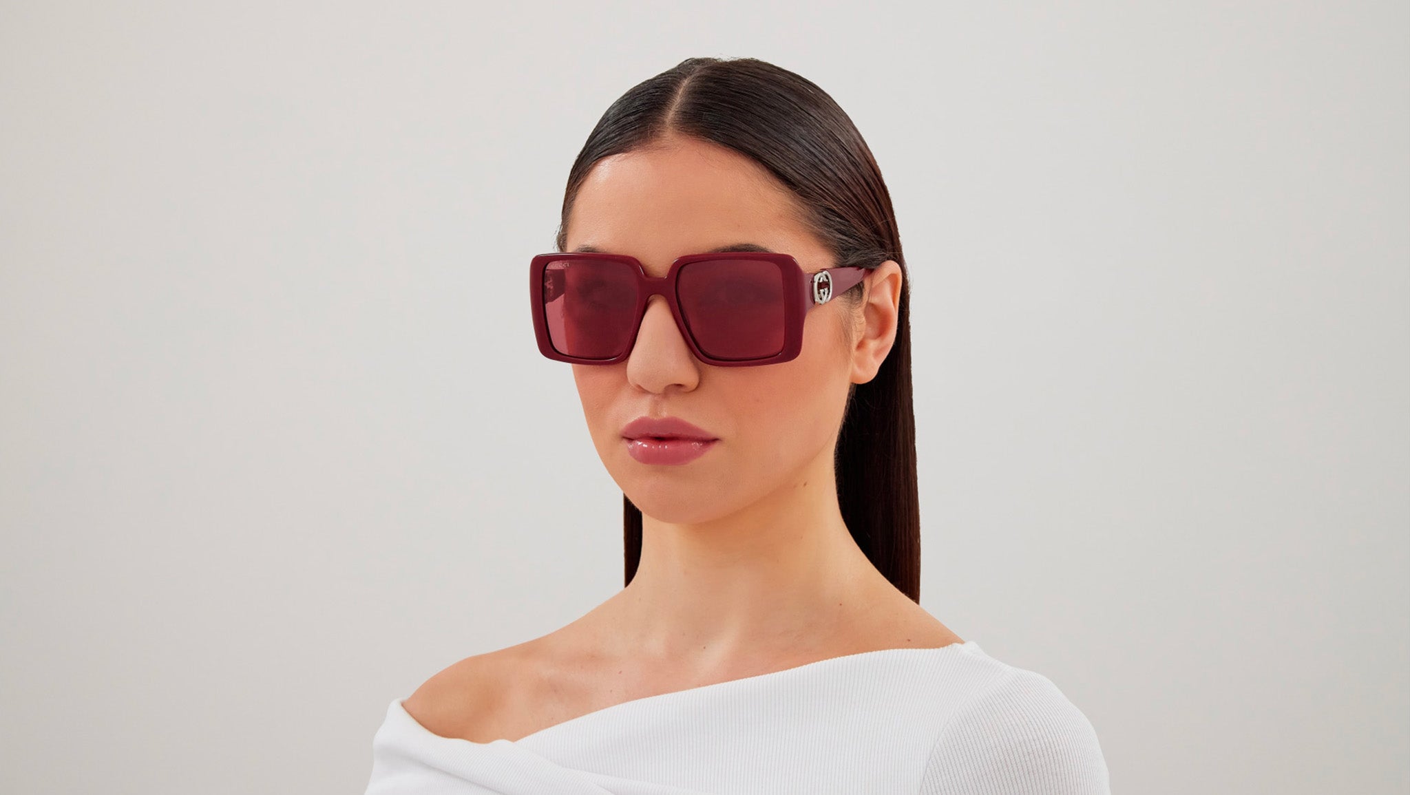 Occhiali da sole Gucci modello GG1692S linea GG Logo in iniettato forma rettangolare codice colore 005 bordeaux tinta unita lucido con aste rosso borgogna e lenti bordeaux solido + flash elettrico. Rivenditore autorizzato Gucci online. Gli occhiali vengono consegnati con custodia e accessori originali e sono coperti dalla garanzia ufficiale di 12 mesi del produttore.
