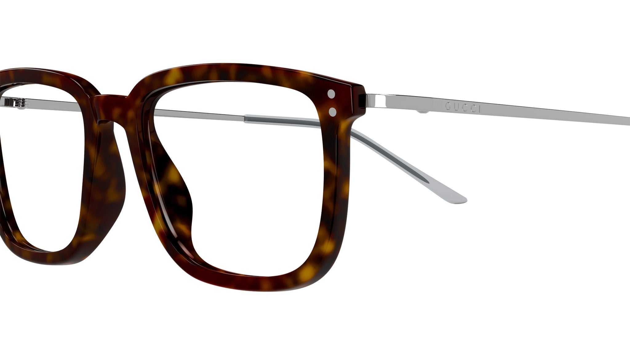 Occhiali da vista Gucci modello GG1709O linea Lettering in acetato riciclato forma rettangolare tartaruga scuro lucido con aste in argento e lenti demo. Rivenditore autorizzato Gucci online. Gli occhiali vengono consegnati con custodia e accessori originali e sono coperti dalla garanzia ufficiale di 12 mesi del produttore.