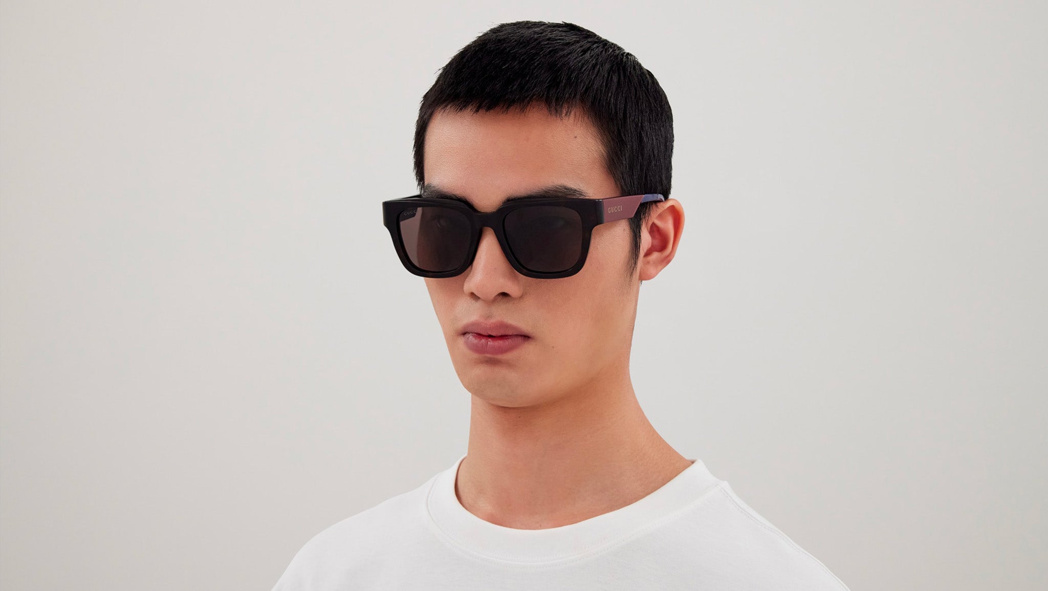 Occhiali da sole Gucci modello GG1670SK linea Lettering in acetato riciclato forma rettangolare codice colore 002 tartaruga scuro lucido con aste blu e lenti grigio tinta unita. Rivenditore autorizzato Gucci online. Gli occhiali vengono consegnati con custodia e accessori originali e sono coperti dalla garanzia ufficiale di 12 mesi del produttore.