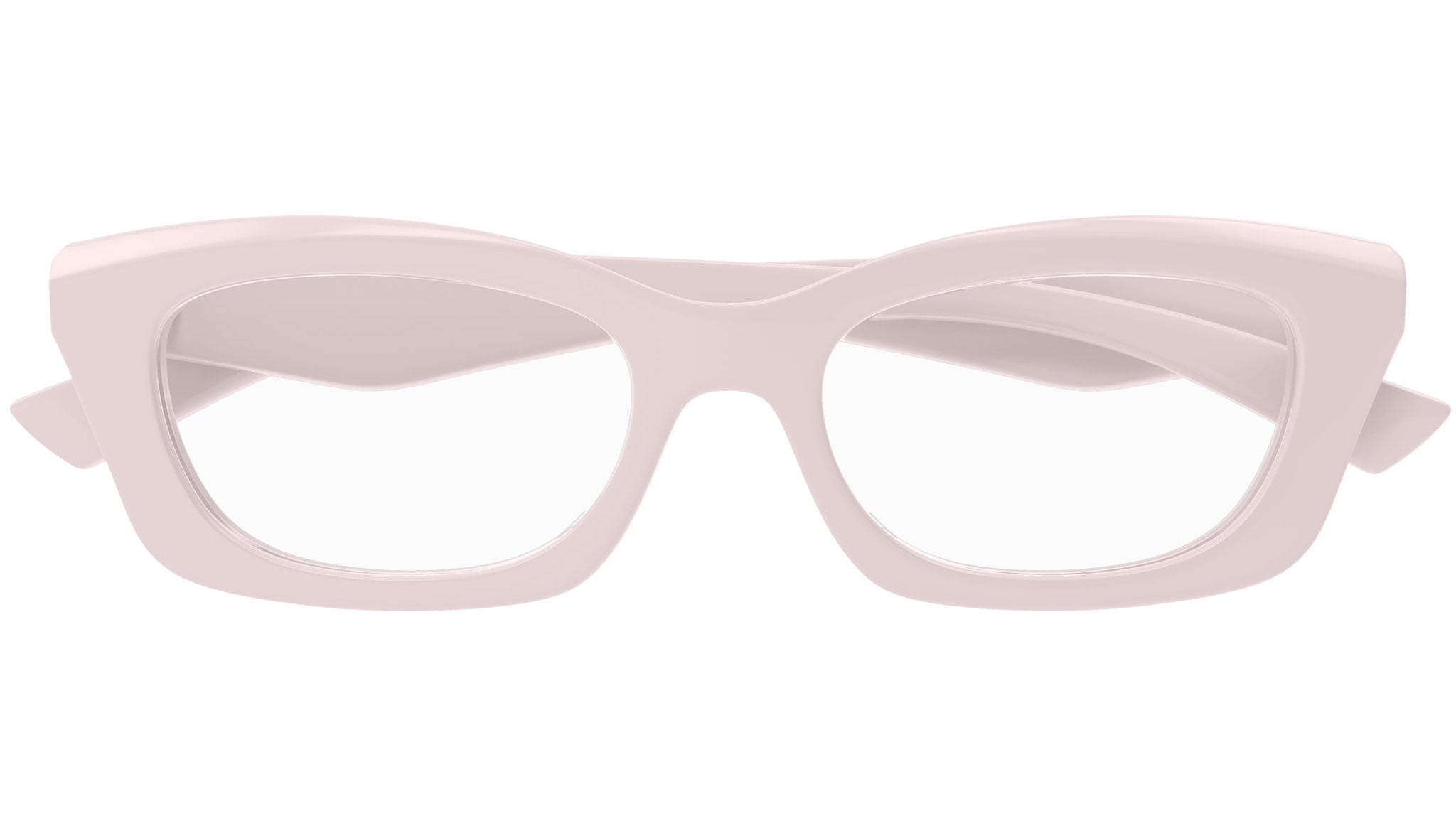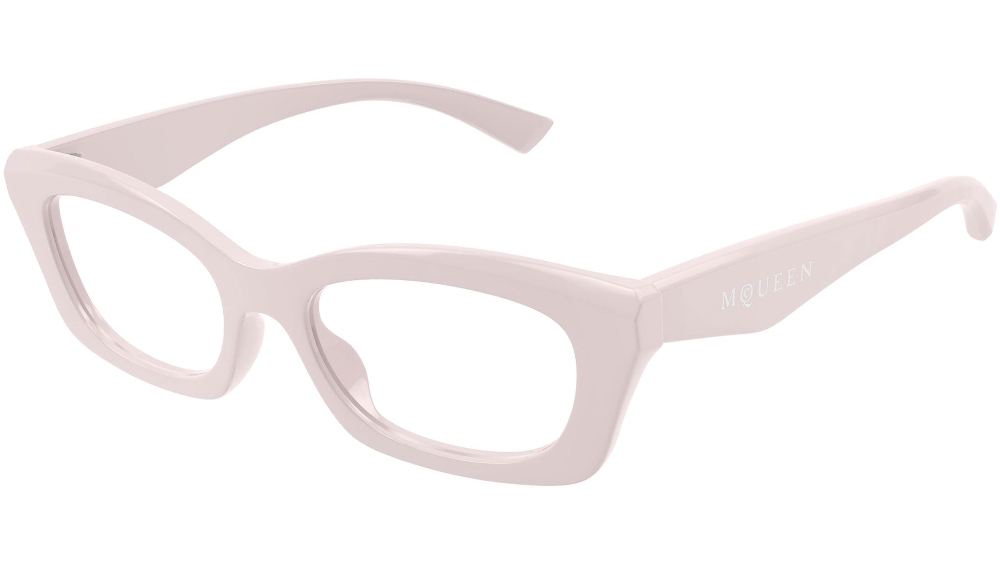 Occhiali da vista Alexander McQueen Casual Lines modello AM0474O in acetato riciclato rettangolare codice colore 005 rosa tinta unita lucido con aste rosa e lenti demo. Rivenditore autorizzato Alexander McQueen online. Gli occhiali vengono consegnati con custodia e accessori originali e sono coperti dalla garanzia ufficiale di 12 mesi del produttore.