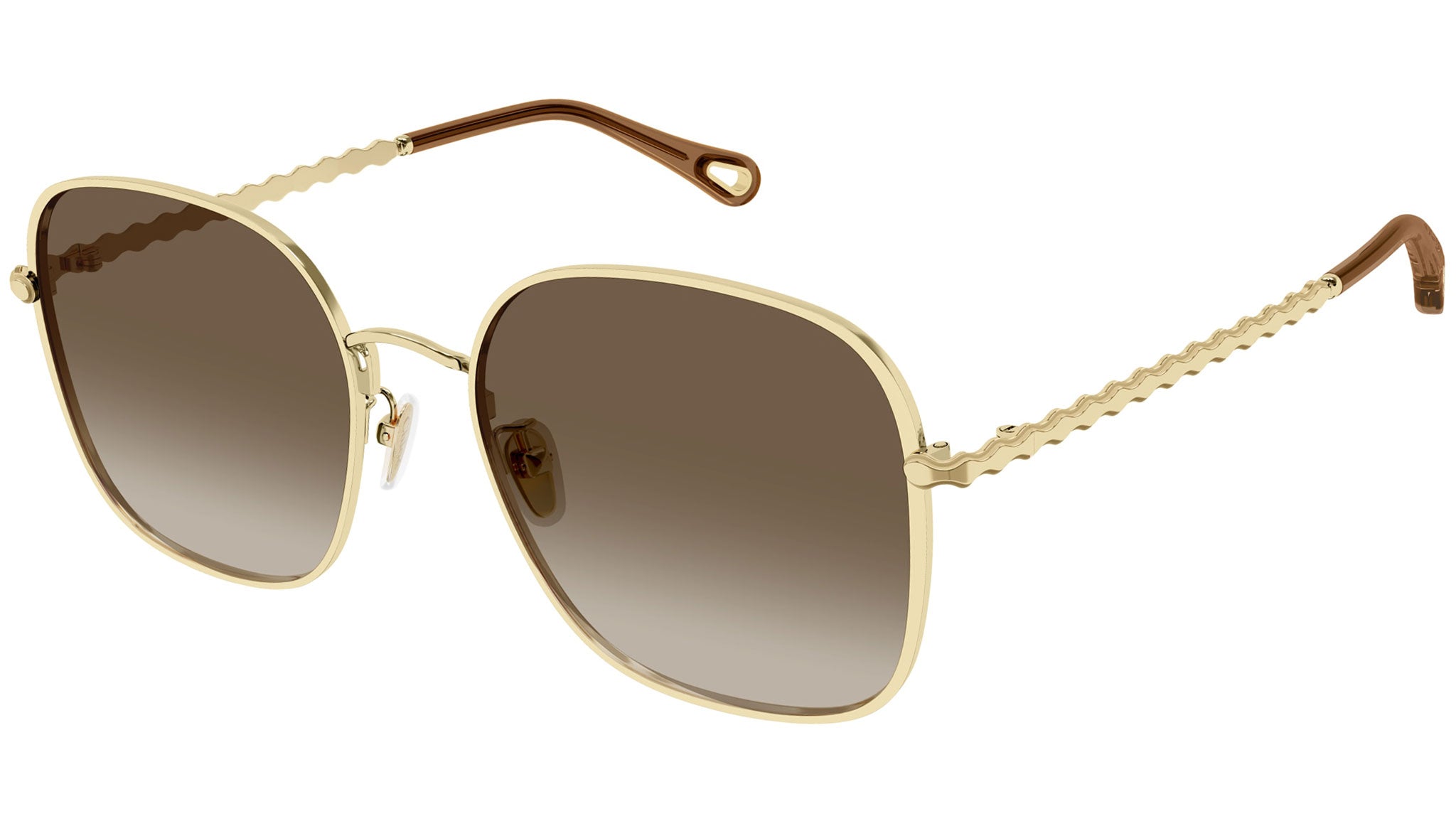 Occhiali da sole Chloé CH0255SK 003 donna con montatura rettangolare in metallo oro lucido classico e lenti marrone sfumato. Linea: Chloé. Codice modello: CH0255SK. Codice colore: 003. Made in Japan. Rivenditore autorizzato Chloé online. Gli occhiali vengono consegnati con custodia e accessori originali e sono coperti dalla garanzia ufficiale di 12 mesi del produttore.