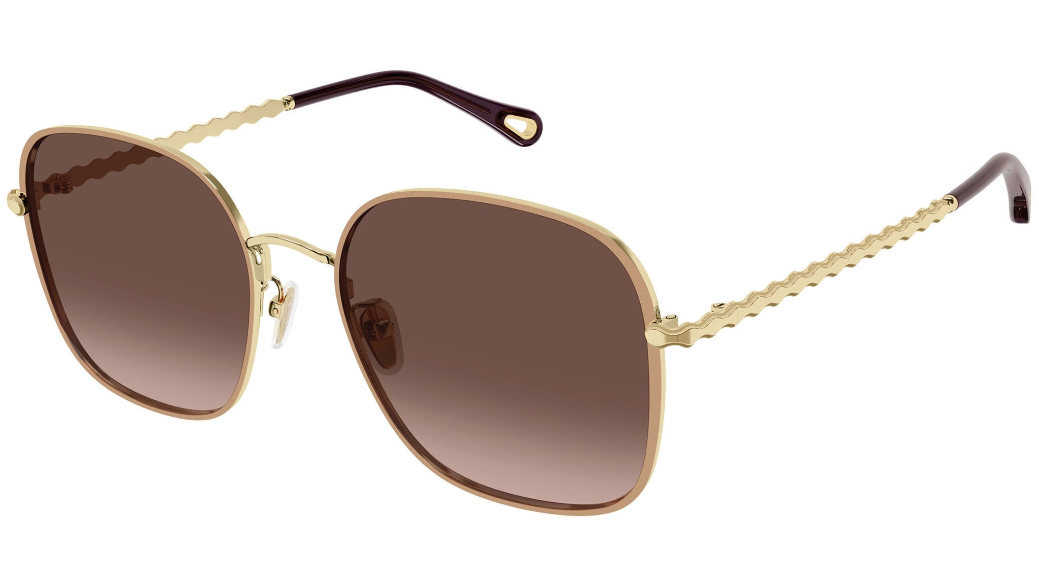 Occhiali da sole Chloé CH0255SK 004 donna con montatura rettangolare in metallo oro classico lucido + vernice beige solida lucida e lenti doppia sfumatura marrone / rosa. Linea: Chloé. Codice modello: CH0255SK. Codice colore: 004. Made in Japan. Rivenditore autorizzato Chloé online. Gli occhiali vengono consegnati con custodia e accessori originali e sono coperti dalla garanzia ufficiale di 12 mesi del produttore.
