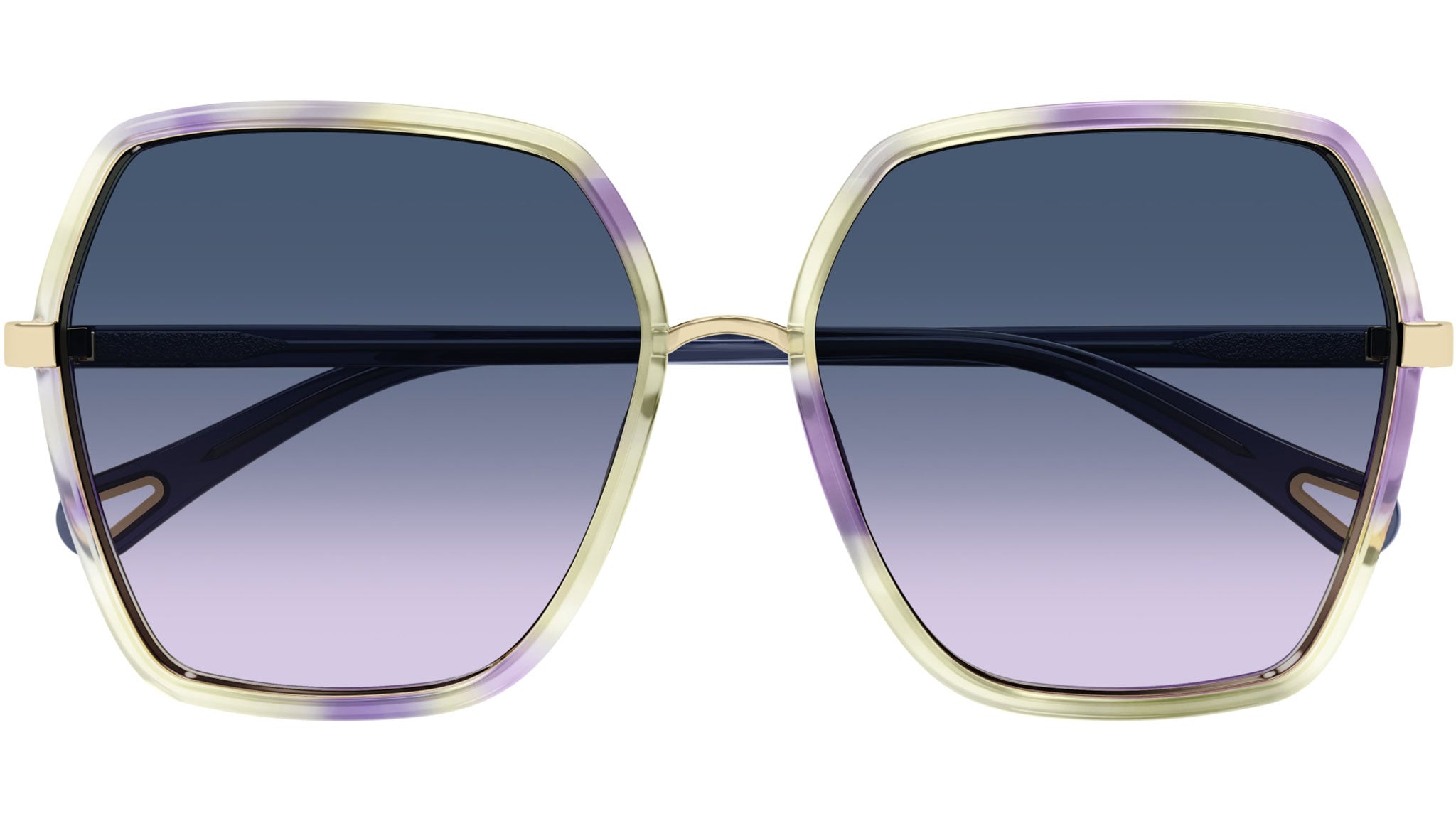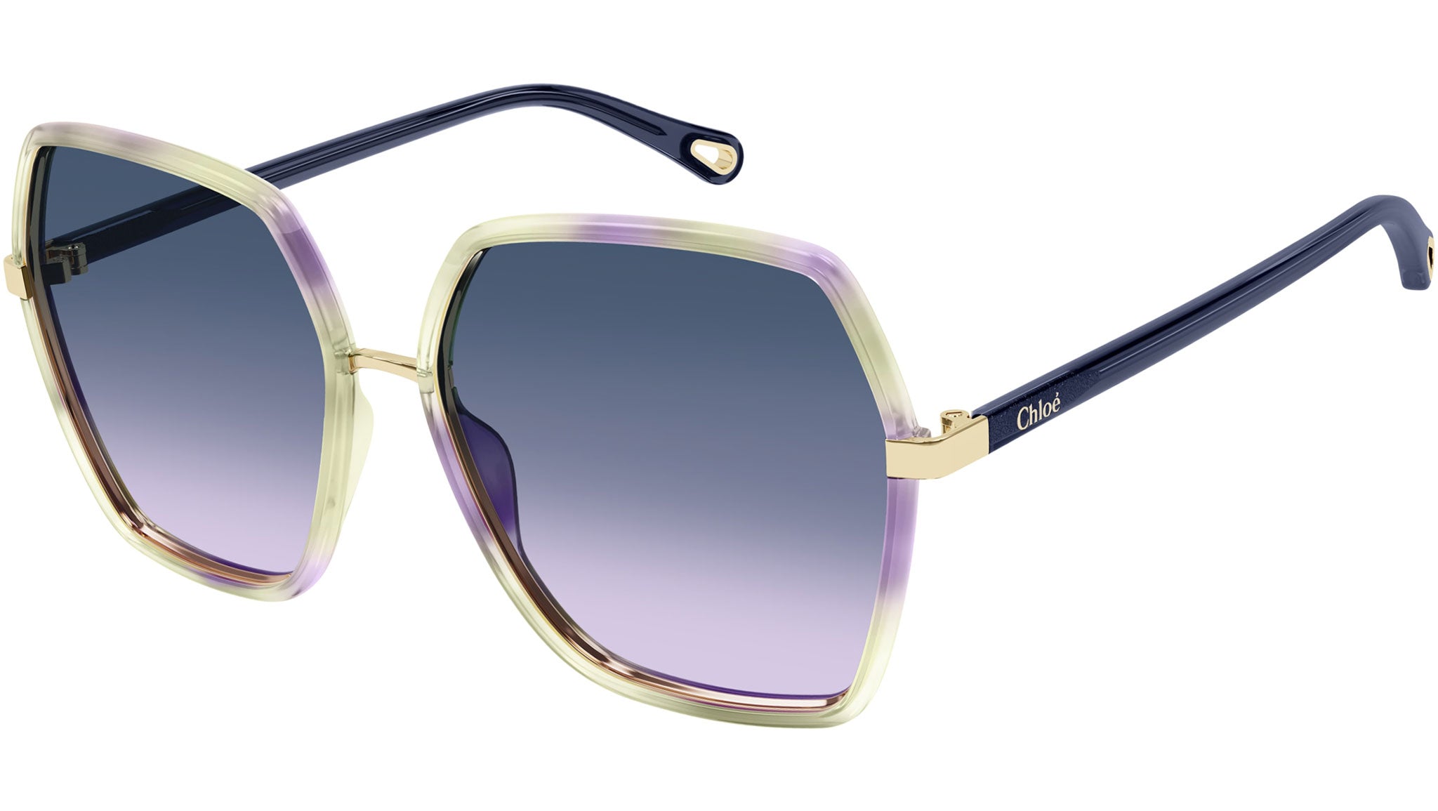 Occhiali da sole Chloé CH0262S 002 donna con montatura rettangolare in inietatto avana viola trasparente lucido tie-dye spot verde chiaro e lenti doppia sfumatura blu / lilla. Linea: Chloé. Codice modello: CH0262S. Codice colore: 002. Made in Italy. Rivenditore autorizzato Chloé online. Gli occhiali vengono consegnati con custodia e accessori originali e sono coperti dalla garanzia ufficiale di 12 mesi del produttore.