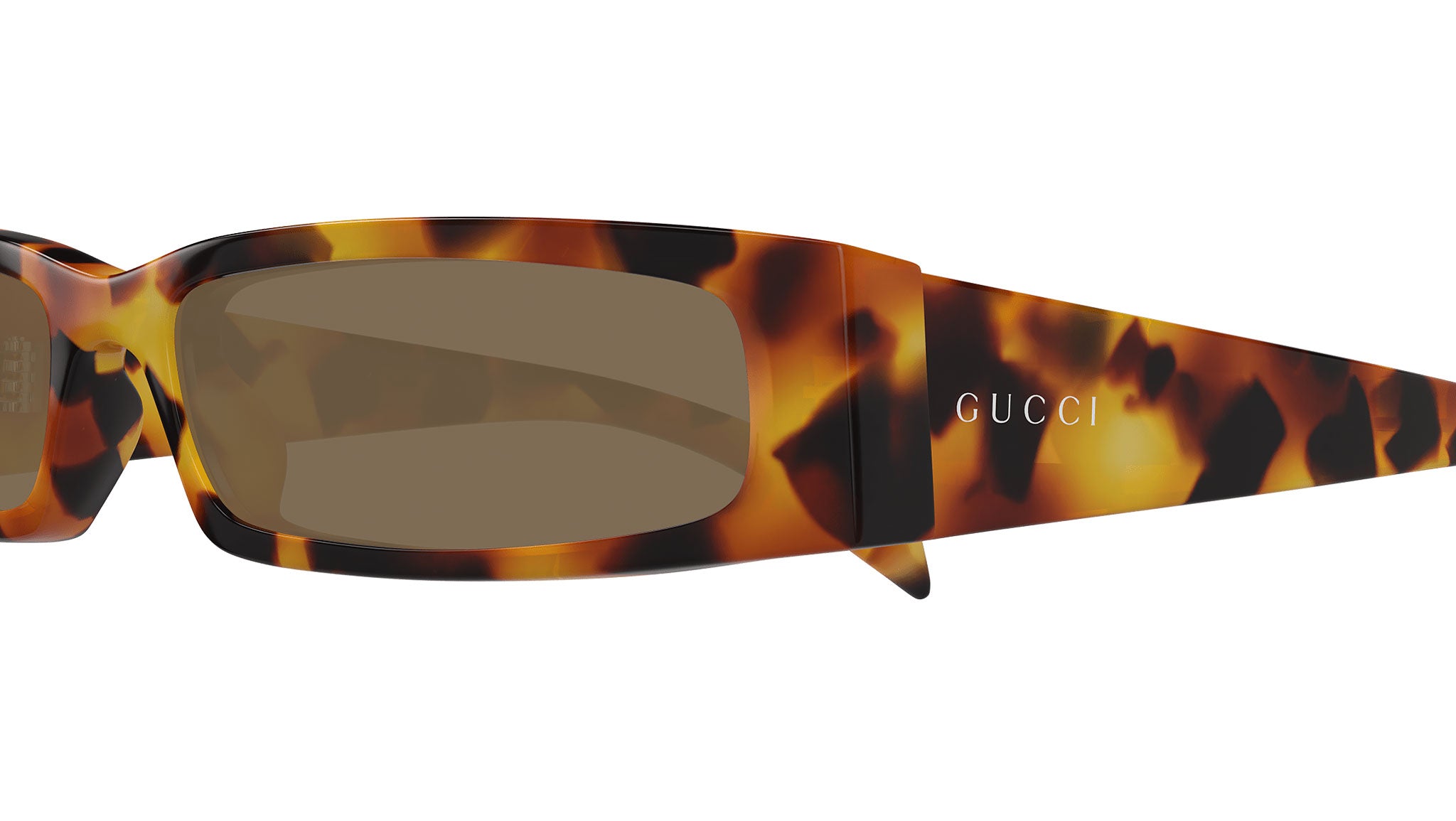 Occhiali da sole Gucci modello GG1778S linea Fashion in acetato riciclato forma rettangolare codice colore 008 avana maculato lucido con aste tartaruga e lenti marrone tinta unita. Rivenditore autorizzato Gucci online. Gli occhiali vengono consegnati con custodia e accessori originali e sono coperti dalla garanzia ufficiale di 12 mesi del produttore.