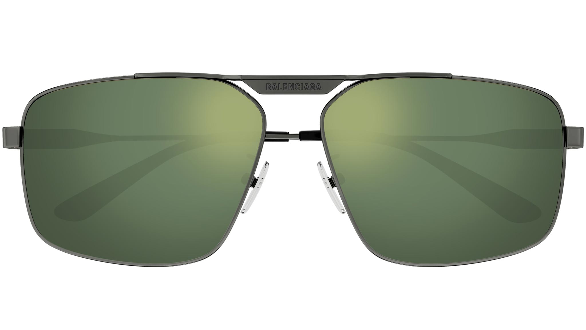 Occhiali da sole Balenciaga BB0418SK 003 uomo con montatura aviatore in metallo rutenio scuro lucido e lenti grigio solido + verde a specchio. Linea: Everyday. Codice modello: BB0418SK. Codice colore: 003. Made in Japan. Rivenditore autorizzato Balenciaga online. Gli occhiali vengono consegnati con custodia e accessori originali e sono coperti dalla garanzia ufficiale di 12 mesi del produttore.