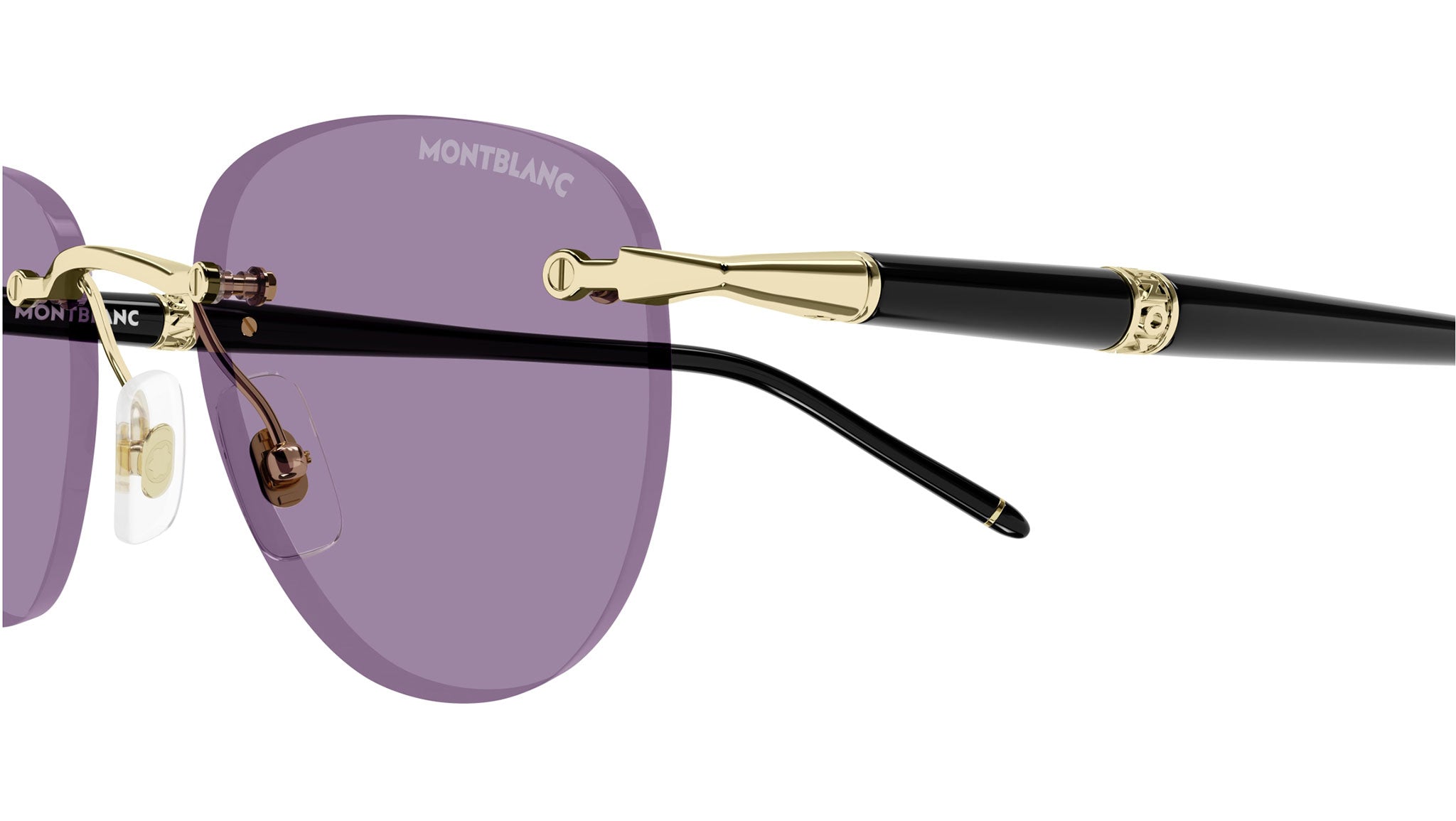 Occhiali da sole Montblanc MB0412S 002 uomo con montatura pantos in metallo oro chiaro lucido e lenti viola tinta unita. Linea: Meisterstück. Codice modello: MB0412S. Codice colore: 002. Made in Japan. Rivenditore autorizzato Montblanc online. Gli occhiali vengono consegnati con custodia e accessori originali e sono coperti dalla garanzia ufficiale di 12 mesi del produttore.