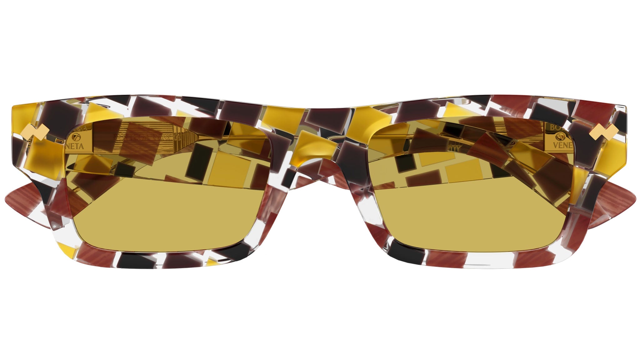 Occhiali da sole Bottega Veneta BV1351S 003 unisex con montatura rettangolare in acetato riciclato damier bordeaux e ocra lucido e lenti beige nicotina tinta unita. Linea: Ribbon. Codice modello: BV1351S. Codice colore: 003. Made in Japan. Rivenditore autorizzato Bottega Veneta online. Gli occhiali vengono consegnati con custodia e accessori originali e sono coperti dalla garanzia ufficiale di 12 mesi del produttore.