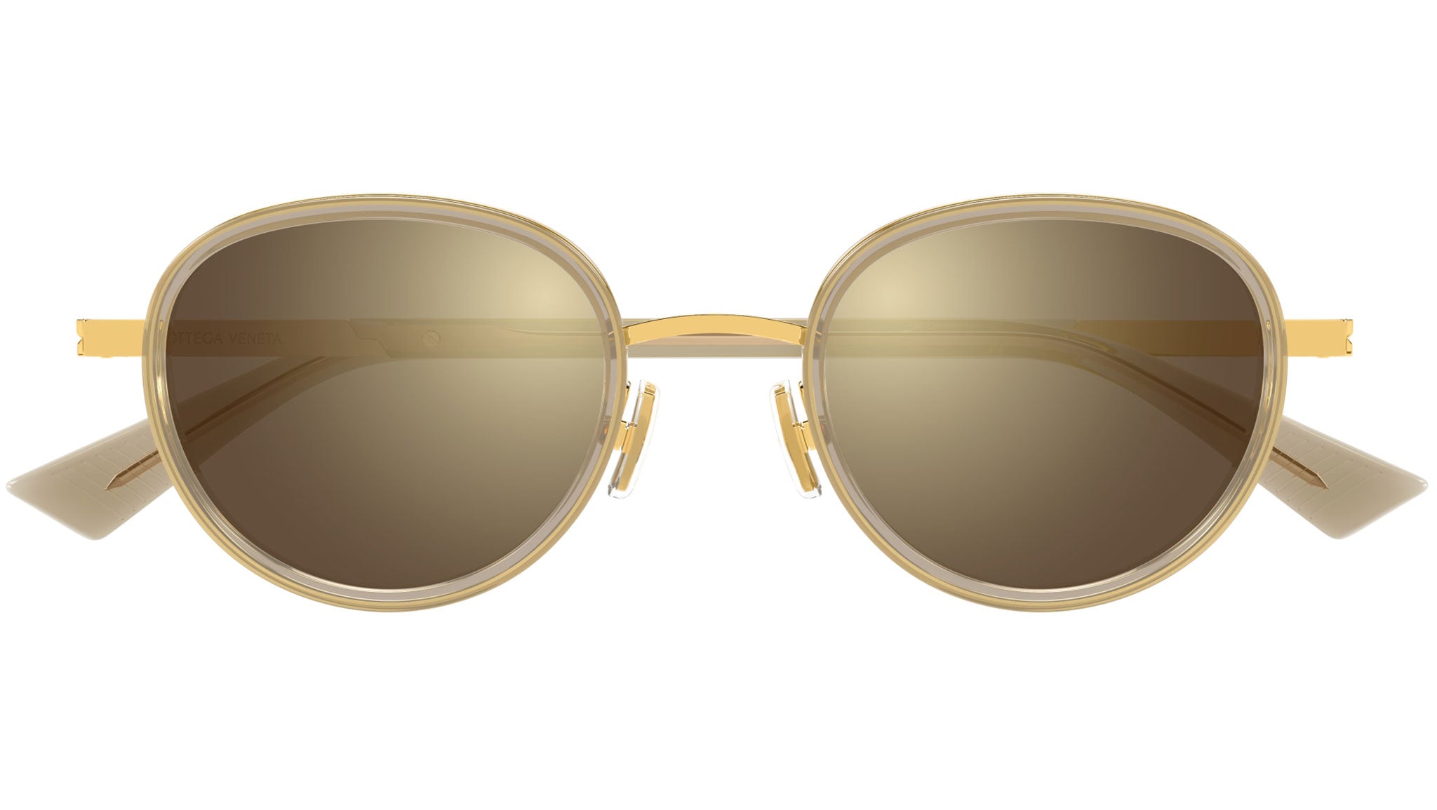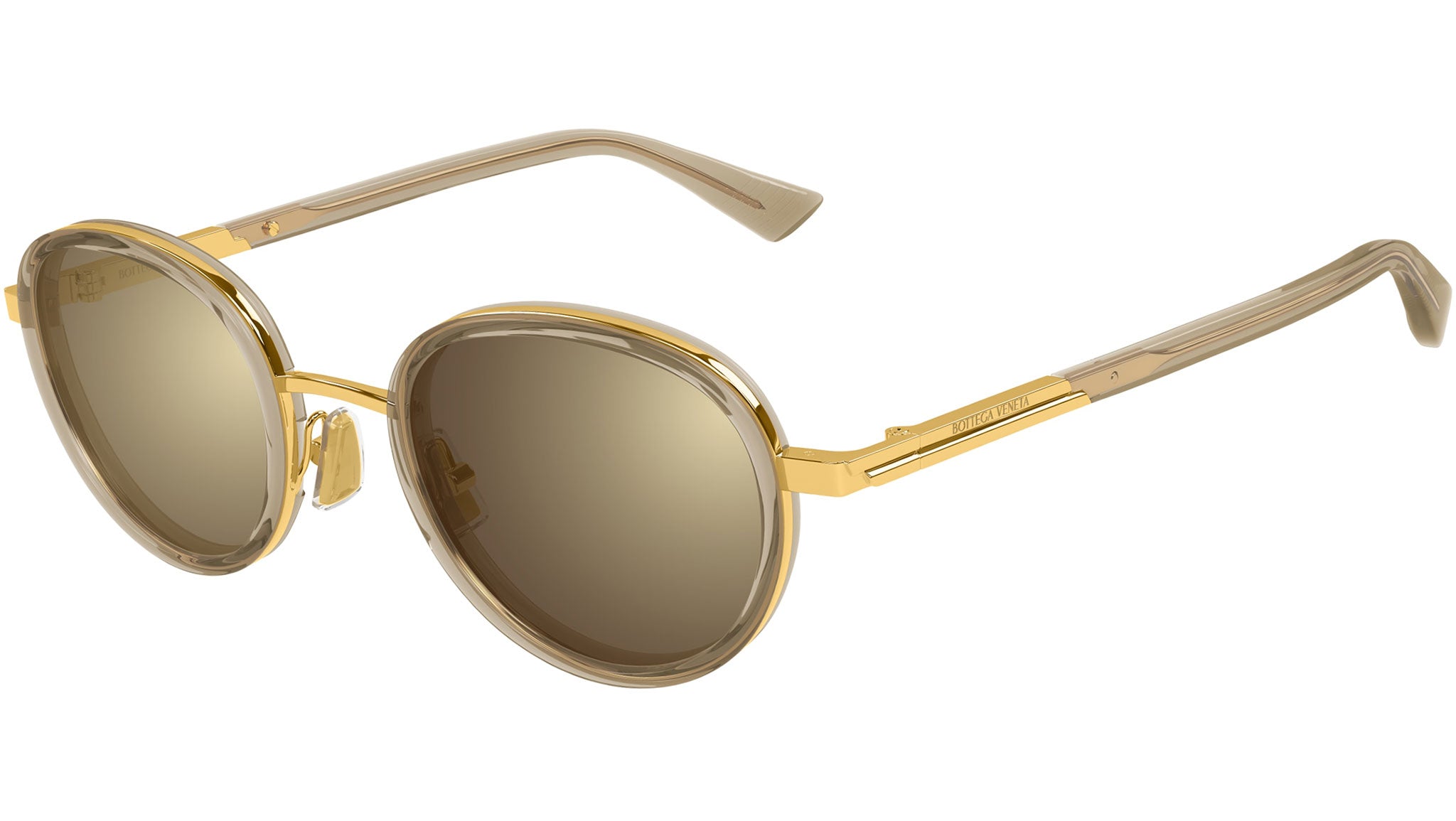 Occhiali da sole Bottega Veneta BV1372S 003 unisex con montatura pantos in acetato riciclato marrone trasparente lucido e lenti marrone + canna di fucile flash tinta unita. Linea: Ribbon. Codice modello: BV1372S. Codice colore: 003. Made in Italy. Rivenditore autorizzato Bottega Veneta online. Gli occhiali vengono consegnati con custodia e accessori originali e sono coperti dalla garanzia ufficiale di 12 mesi del produttore.
