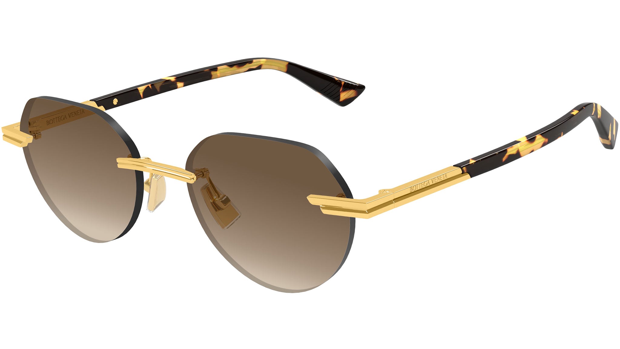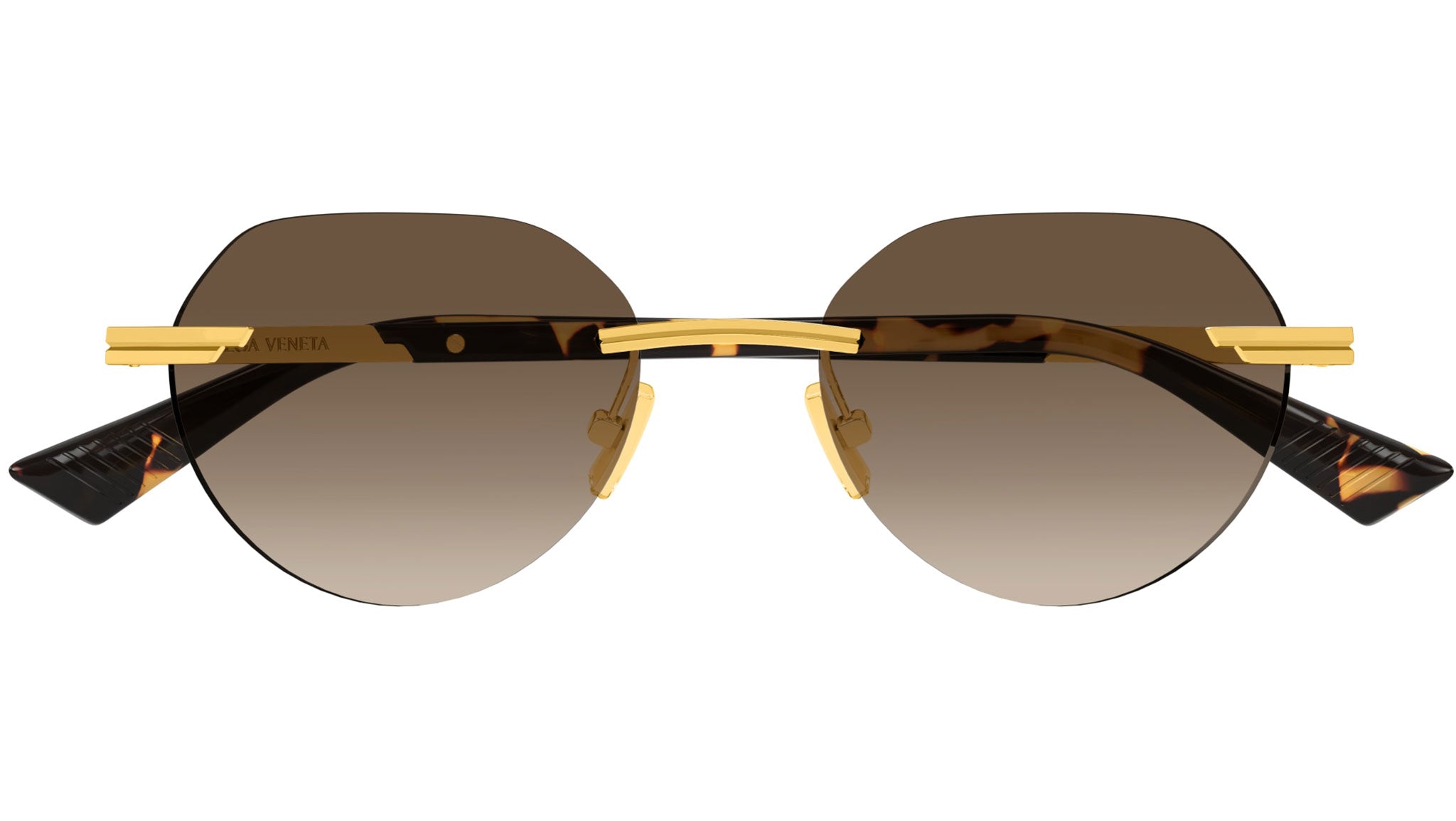 Occhiali da sole Bottega Veneta BV1379S 003 uomo con montatura pantos in metallo oro lucido e lenti marrone sfumato. Linea: Ribbon. Codice modello: BV1379S. Codice colore: 003. Made in Italy. Rivenditore autorizzato Bottega Veneta online. Gli occhiali vengono consegnati con custodia e accessori originali e sono coperti dalla garanzia ufficiale di 12 mesi del produttore.