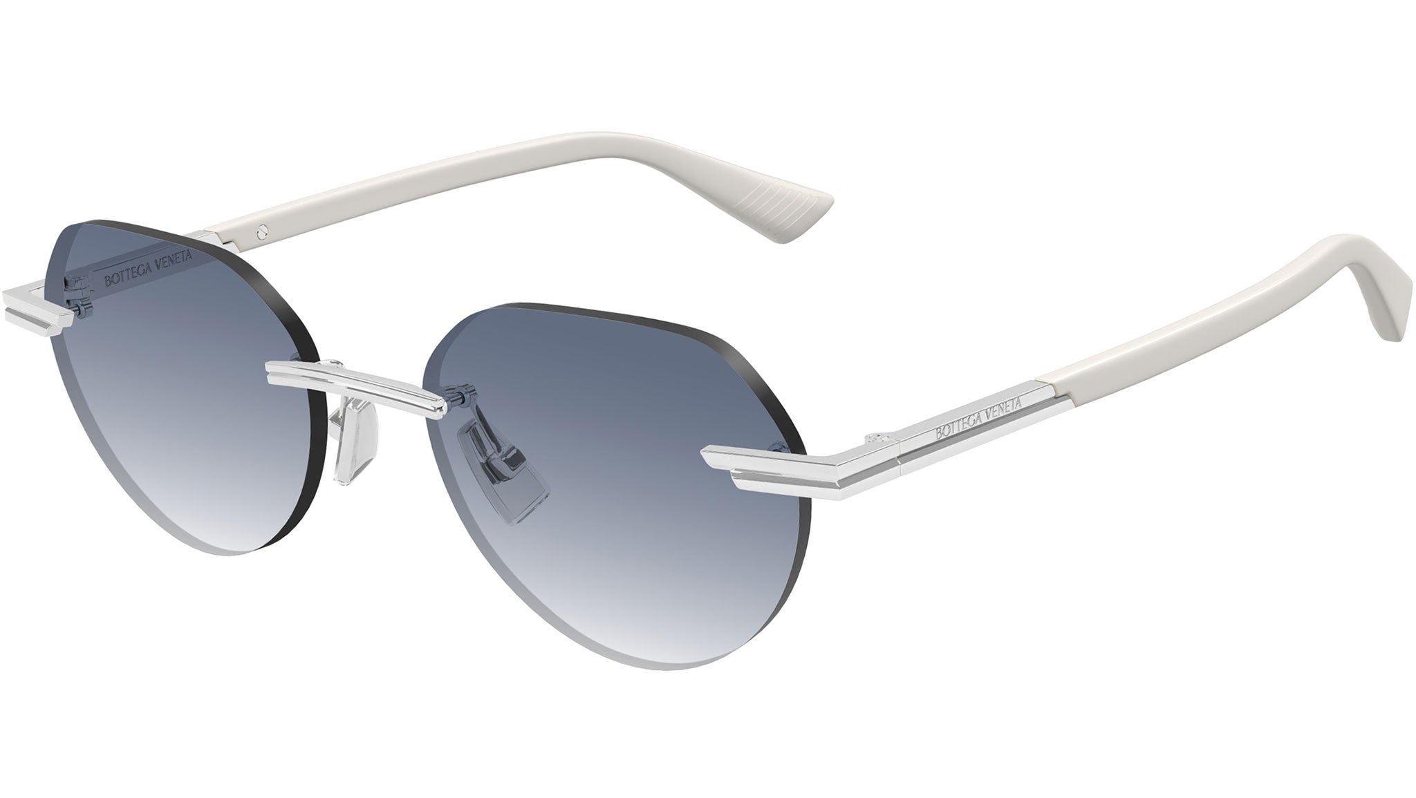 Occhiali da sole Bottega Veneta BV1379S 004 uomo con montatura pantos in metallo argento lucido e lenti blu sfumato. Linea: Ribbon. Codice modello: BV1379S. Codice colore: 004. Made in Italy. Rivenditore autorizzato Bottega Veneta online. Gli occhiali vengono consegnati con custodia e accessori originali e sono coperti dalla garanzia ufficiale di 12 mesi del produttore.