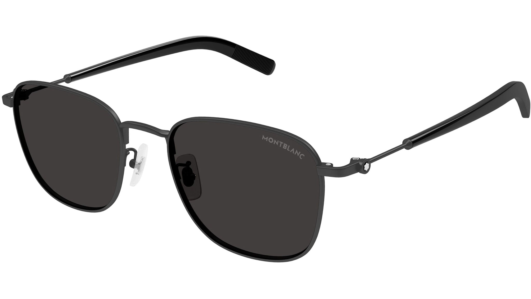 Occhiali da sole Montblanc MB0392SA 001 uomo con montatura rettangolare in metallo nero semiopaco e lenti grigio tinta unita. Linea: Snowcap. Codice modello: MB0392SA. Codice colore: 001. Made in Japan. Rivenditore autorizzato Montblanc online. Gli occhiali vengono consegnati con custodia e accessori originali e sono coperti dalla garanzia ufficiale di 12 mesi del produttore.