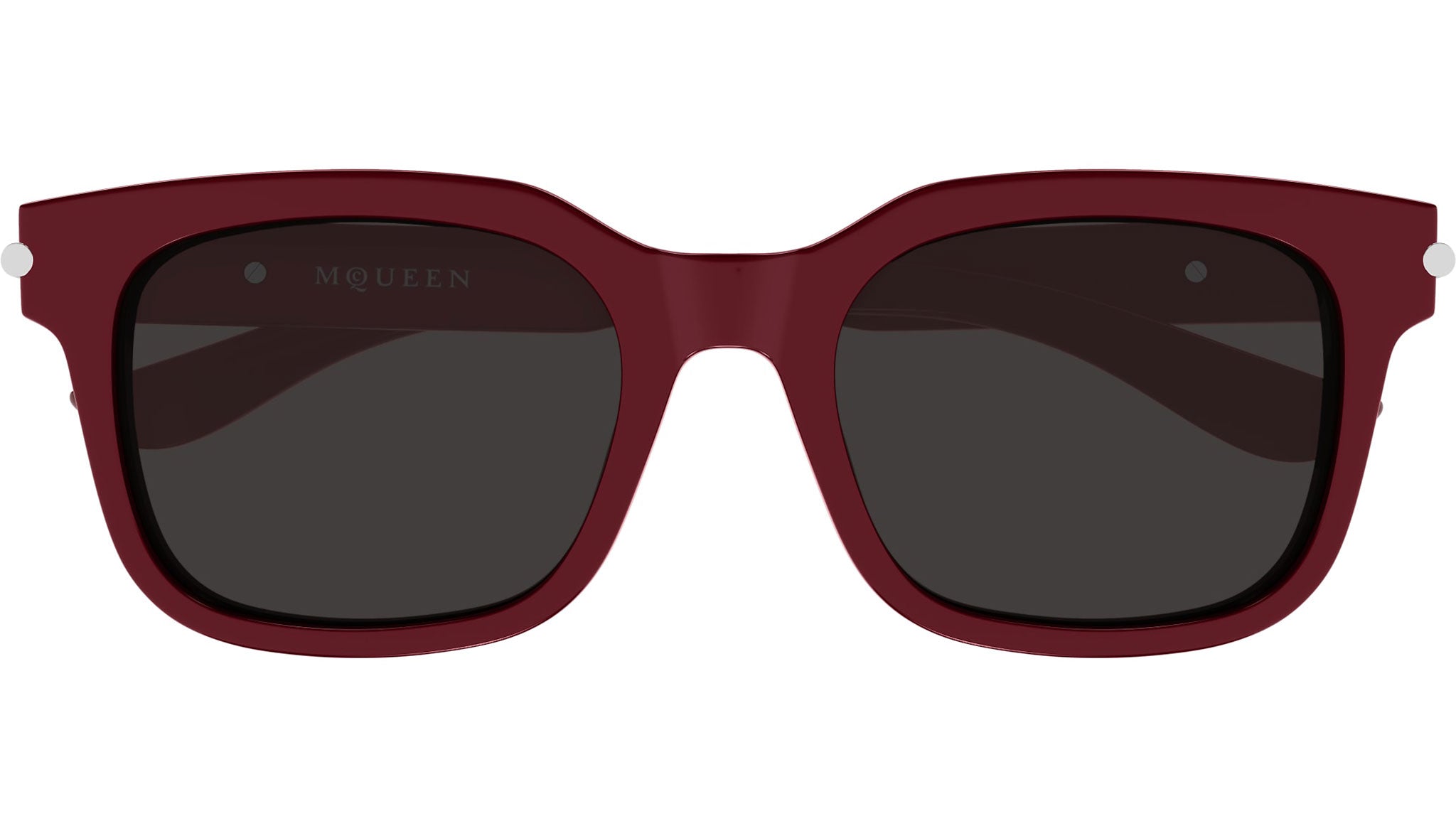 Occhiali da sole Alexander McQueen T-Bar modello AM0496SA in acetato riciclato rettangolari codice colore 003 bordeaux tinta unita lucido con aste bordeaux e lenti color grigio tinta unita. Rivenditore autorizzato Alexander McQueen online. Gli occhiali vengono consegnati con custodia e accessori originali e sono coperti dalla garanzia ufficiale di 12 mesi del produttore.