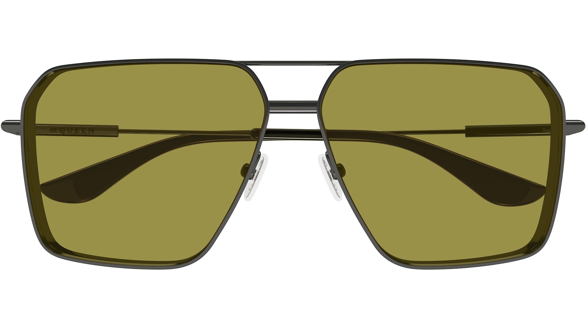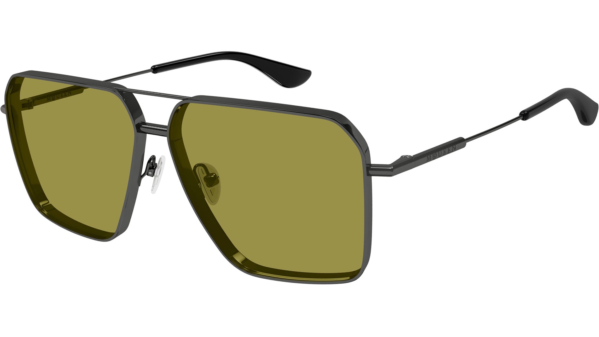 Occhiali da sole Alexander McQueen T-Bar modello AM0500S in metallo navigator codice colore 004 rutenio scuro lucido con aste rutenio e lenti color giallo acceso tinta unita. Rivenditore autorizzato Alexander McQueen online. Gli occhiali vengono consegnati con custodia e accessori originali e sono coperti dalla garanzia ufficiale di 12 mesi del produttore.
